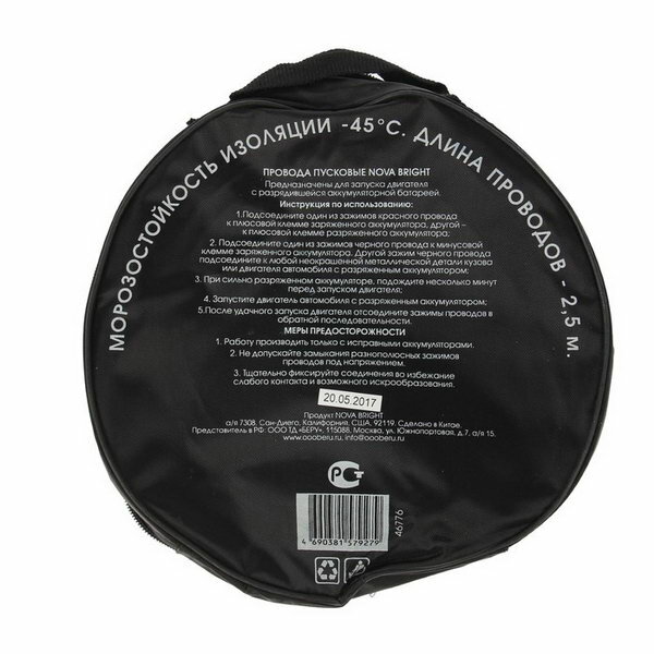 Пусковые провода Nova Bright, 400 А, морозостойкие, в сумке, 2.5 м 2618034 Nova Bright