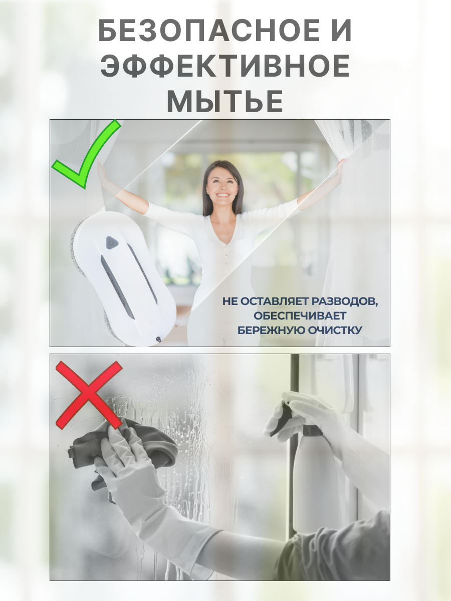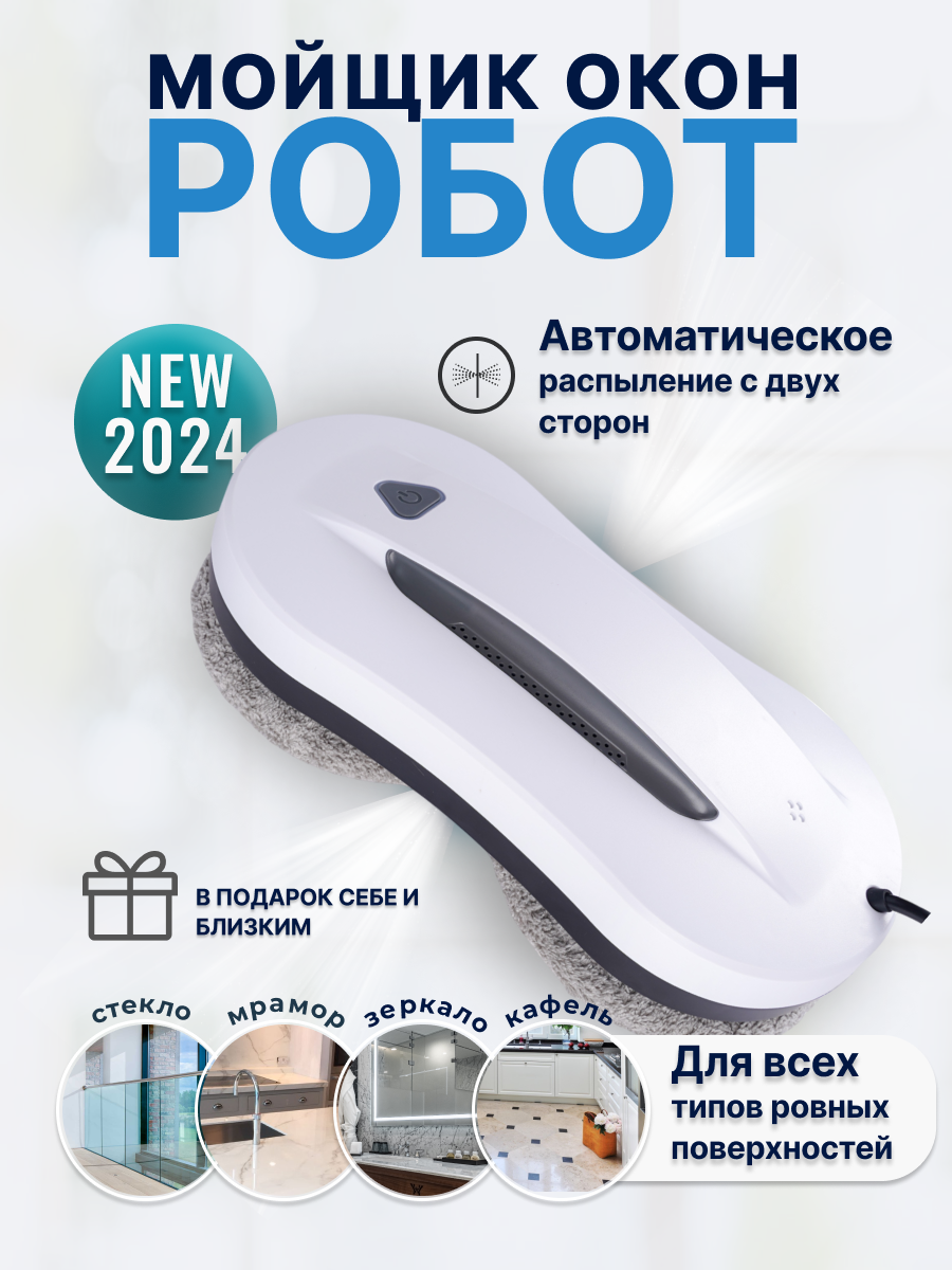 Робот для мойки окон с распылением стеклоочиститель для мытья зеркал, плитки iC BOT HCR-19 со сменными салфетками из микрофибры (10 шт) для сухой и влажной уборки интересное: