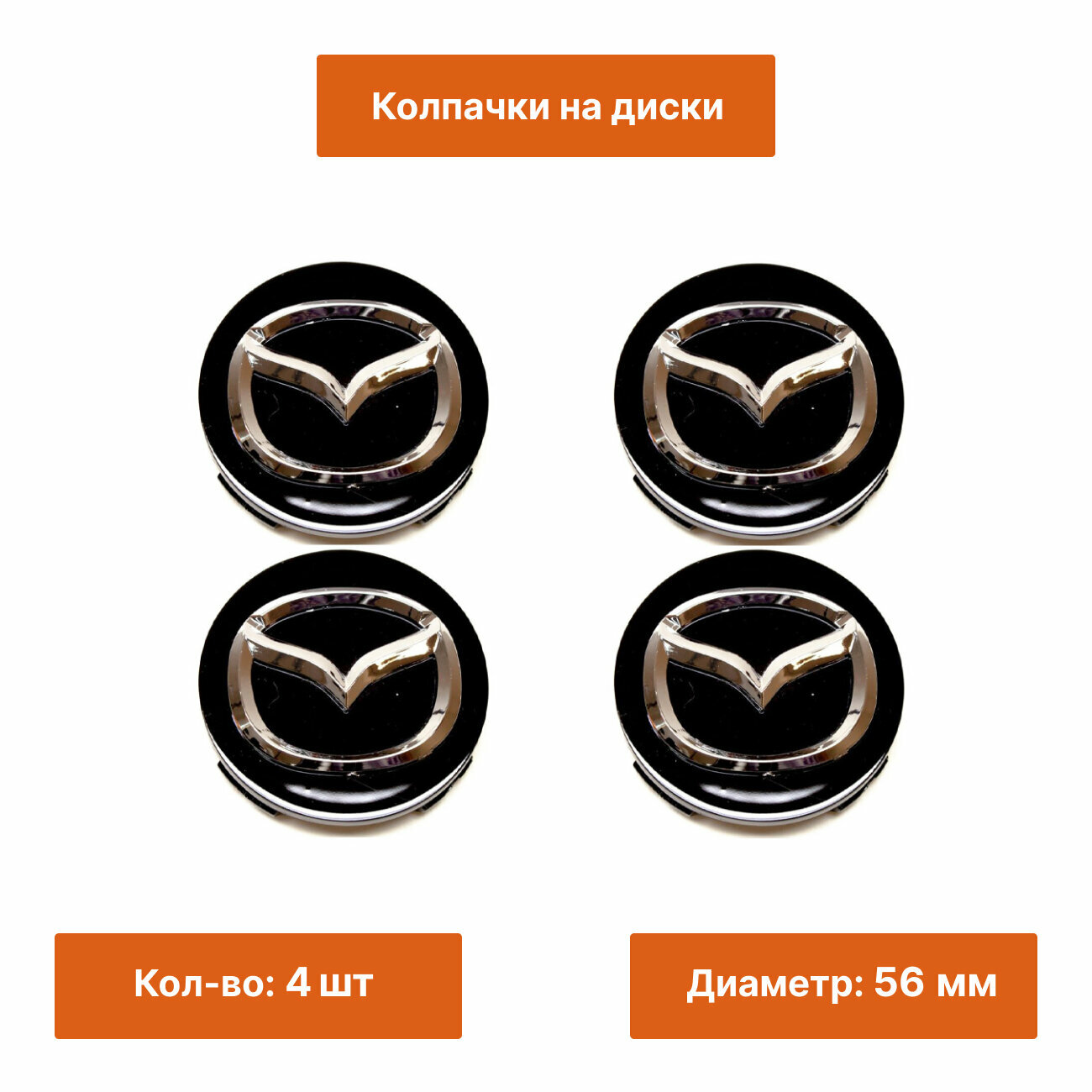 Комплект: колпак на литой диск Mazda черный 56 мм 4 шт.