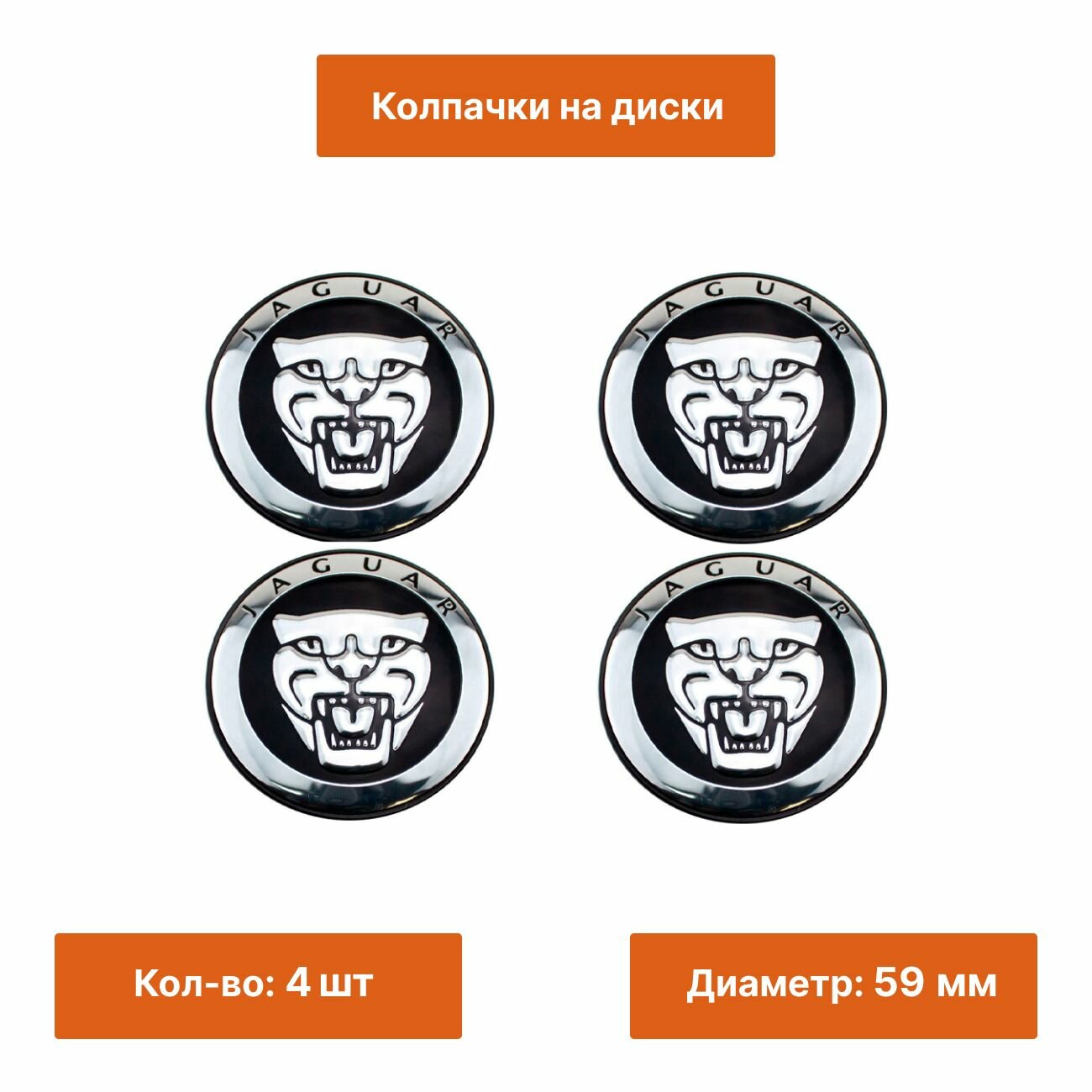 Комплект: колпачок на литой диск для Jaguar черный 4 шт.