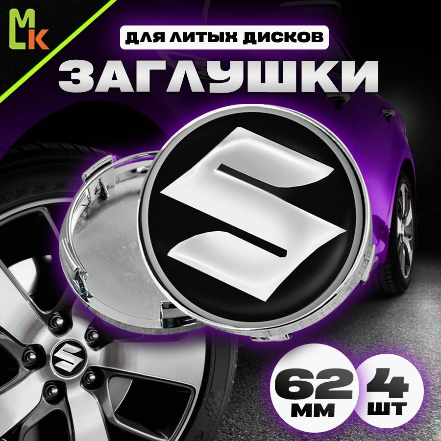 Заглушки на диски автомобиля / Mahinokom/ D 62 мм, комплект для Suzuki интересное: