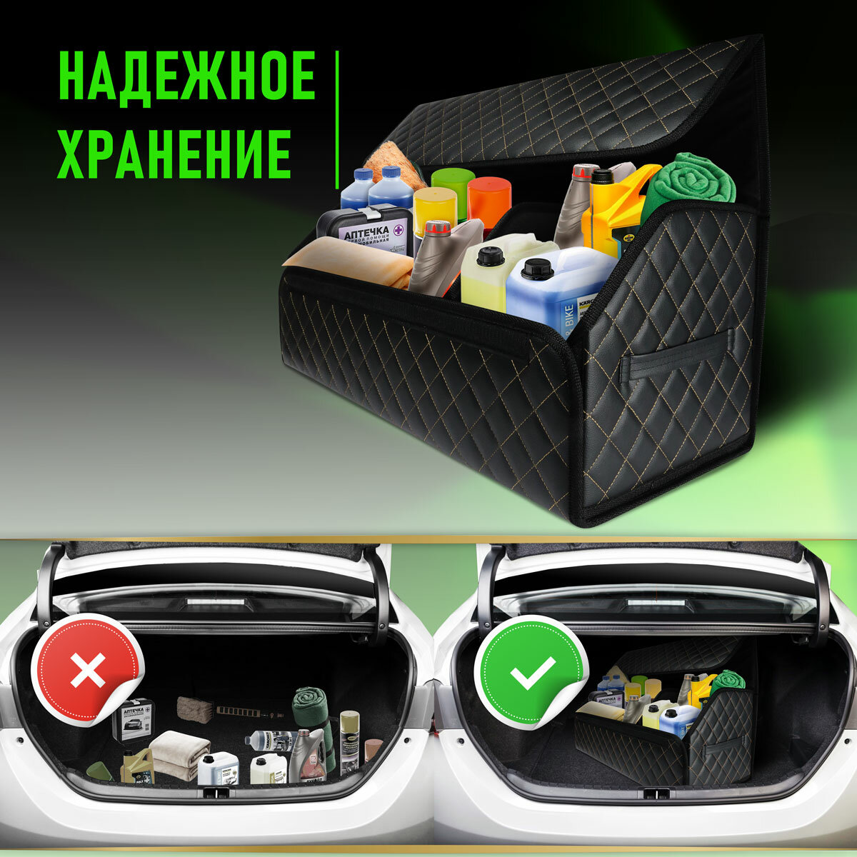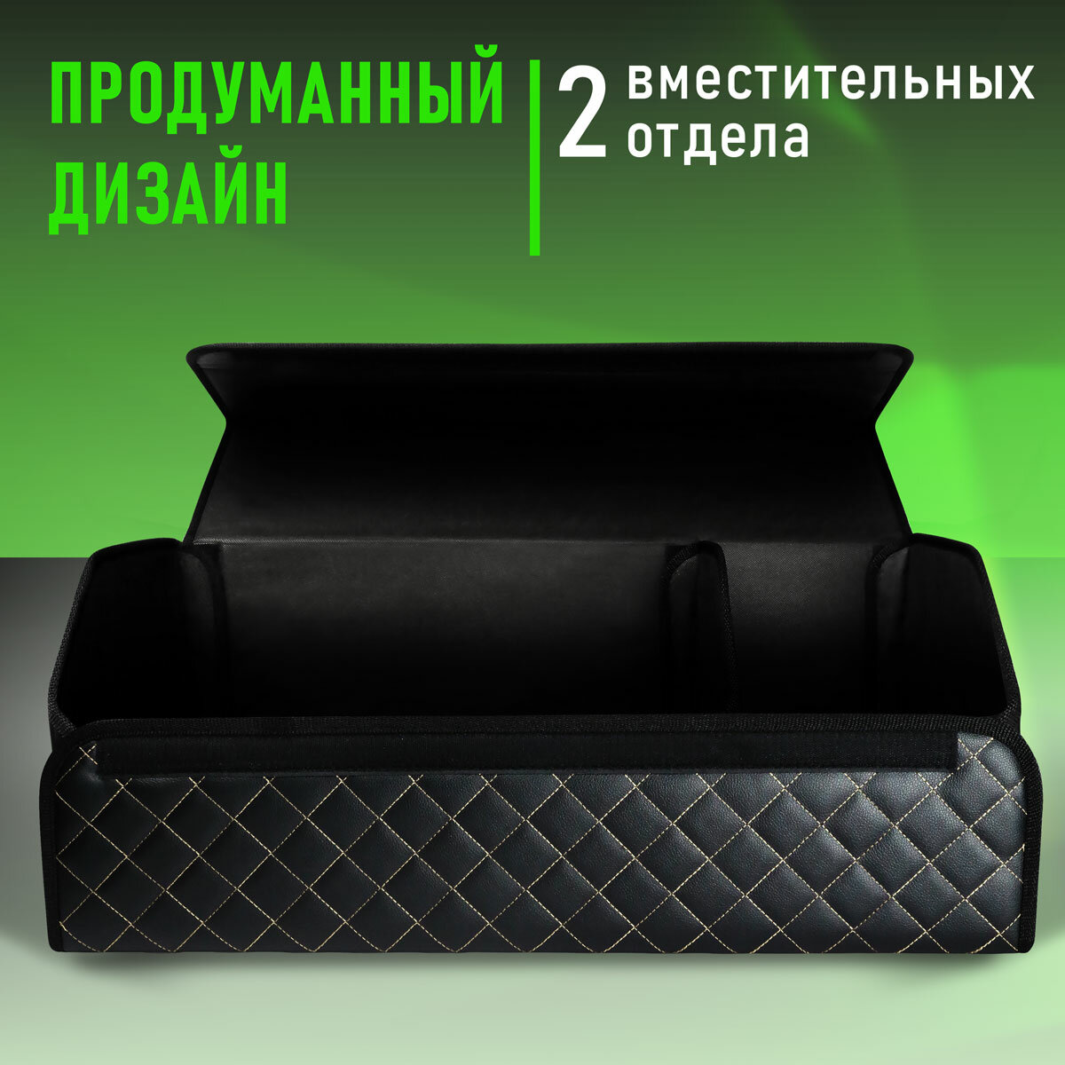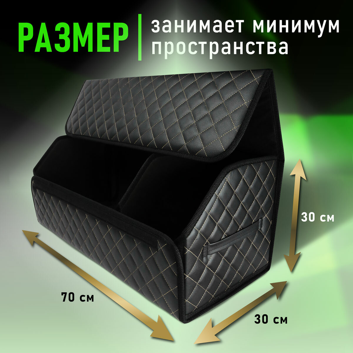 CarCape/Органайзер в багажник автомобиля. Автомобильный бокс для хранения. Модель Classic ромб 50*30см/ Черный, бежевая строчка