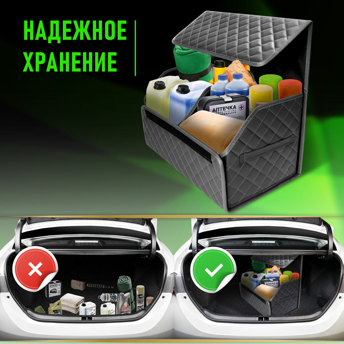СохранитьCarCape/Органайзер в багажник автомобиля. Автомобильный бокс для хранения. Модель Classic ромб 50*30 см/Серый интересное: