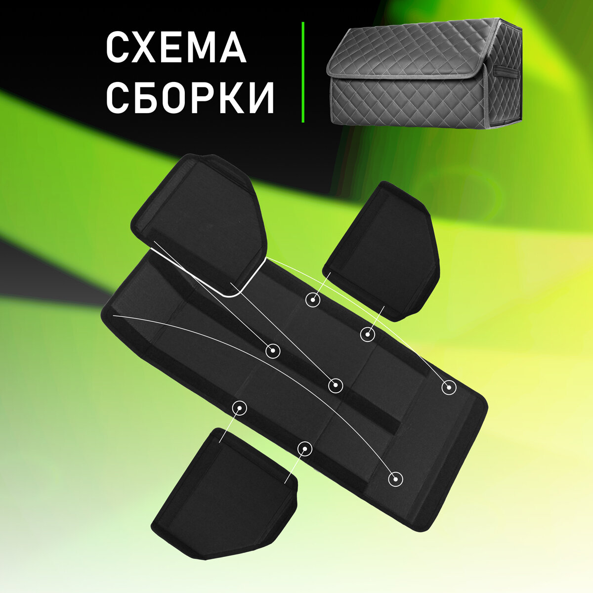CarCape/Органайзер в багажник автомобиля. Автомобильный бокс для хранения. Модель Classic ромб 50*30см/ Черный, бежевая строчка