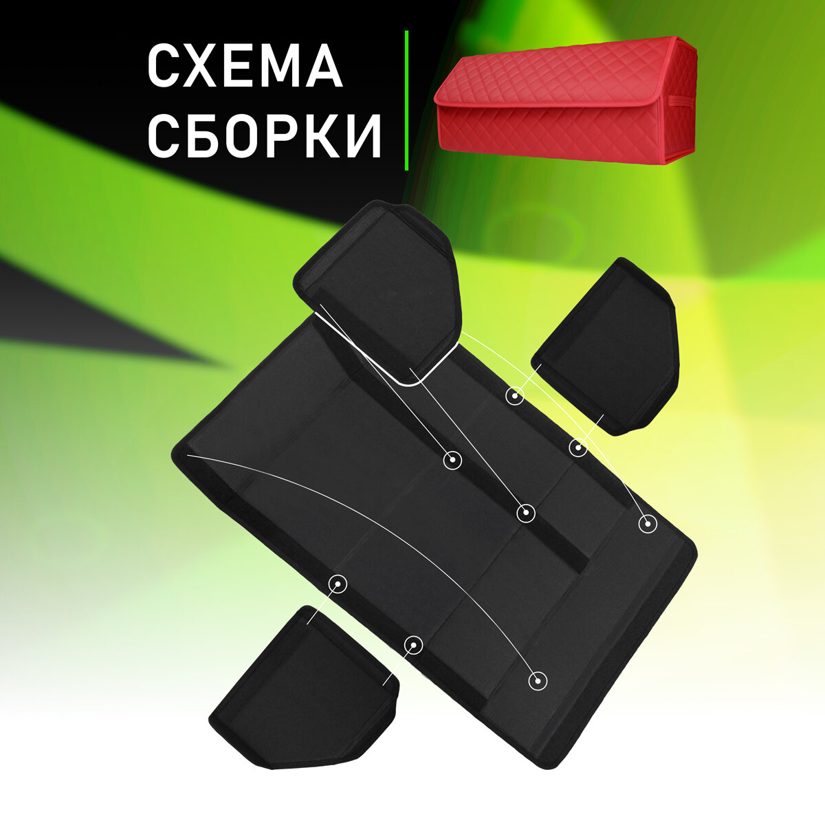 CarCape/Органайзер в багажник автомобиля. Автомобильный бокс для хранения. Модель Classic ромб 50*30см/ Черный, красная строчка