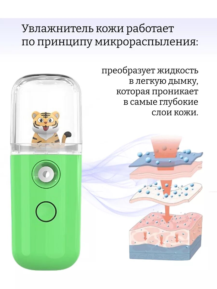 СохранитьУвлажнитель для лица мини, наноувлажнитель с игрушкой тигренок зеленый интересное: