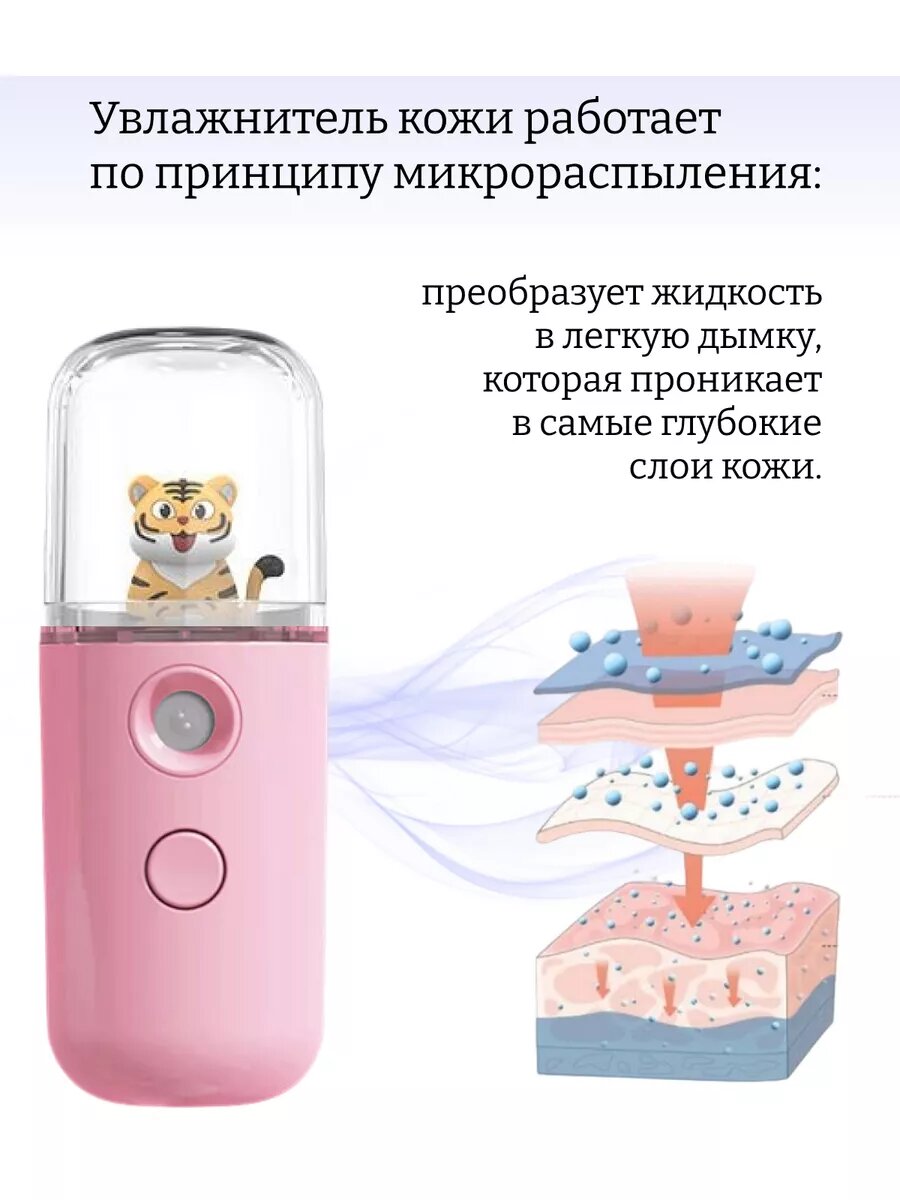 Купить Увлажнитель для лица мини, наноувлажнитель с игрушкой розовый тигренок