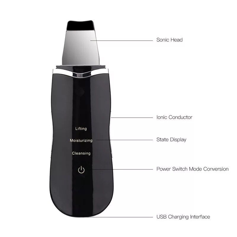 Beauty Concept Ультразвуковой массажер для лица / Инструмент для чистки кожи лица / Прибор для очищения пор, лица, сужения пор на лице / Скрабер для лица ультразвуковой чистки лица, цвет черный интересное: