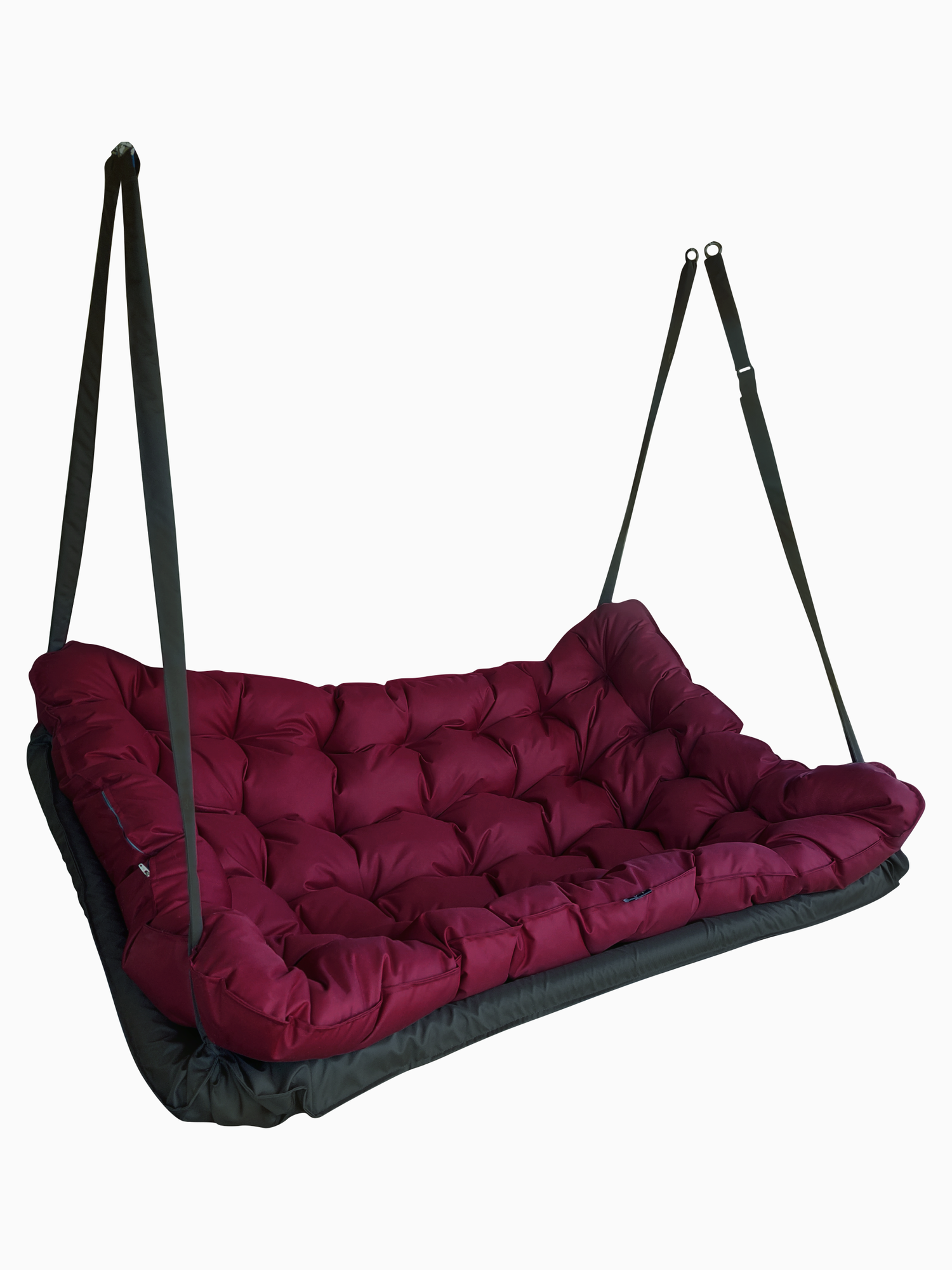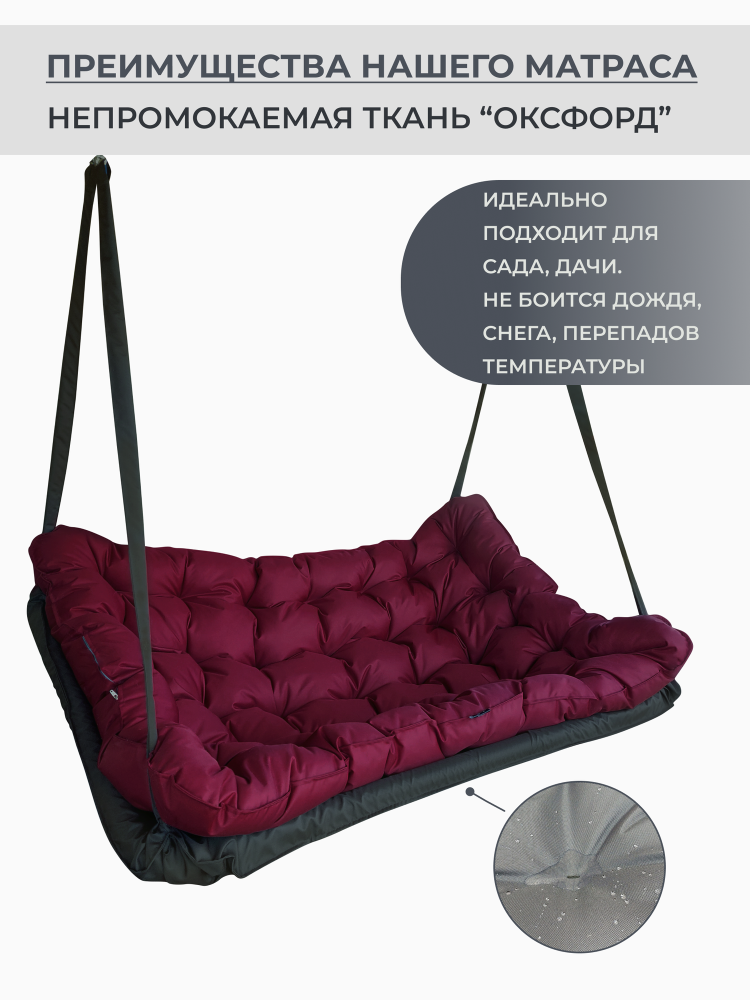 Купить Подвесные качели, качели садовые, диван 180*100, качели для дачи, уличные качели тёмно-серый с бордовой подушкой