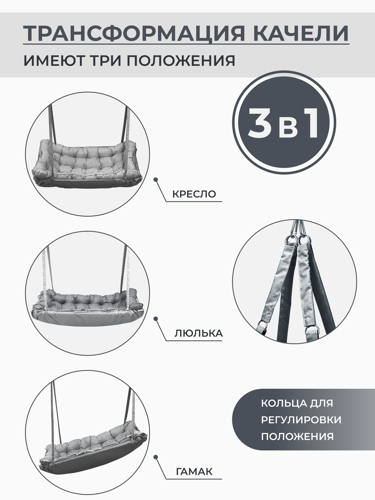 Подвесные качели, качели садовые, диван 180*100, качели для дачи, уличные качели серая с серой подушкой