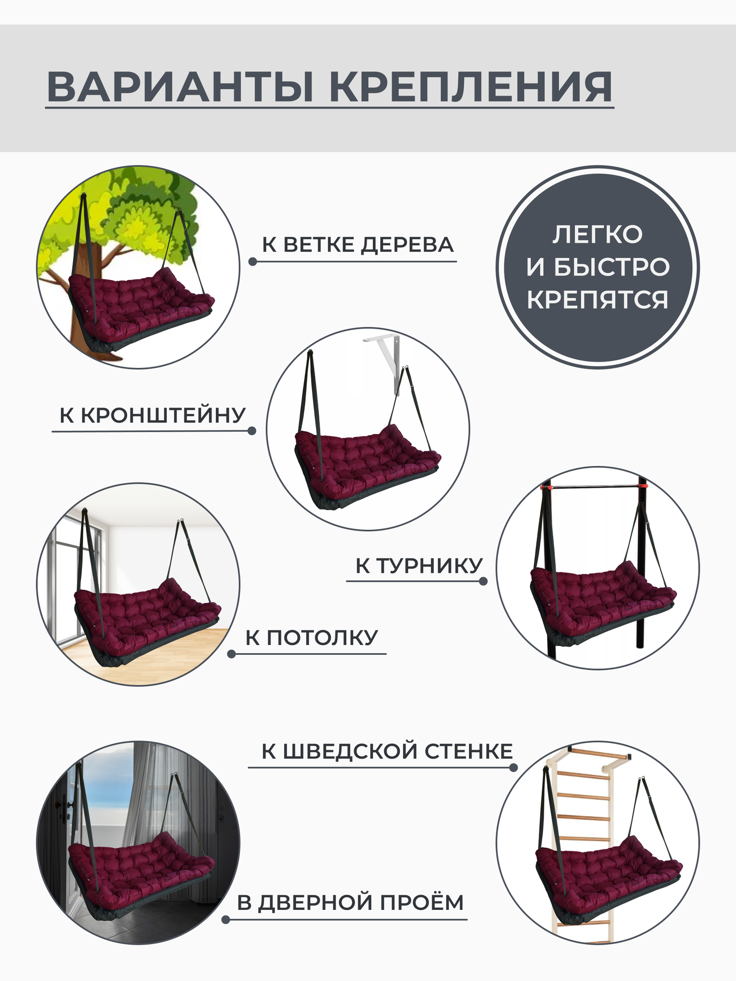 СохранитьПодвесные качели, качели садовые, диван 180*100, качели для дачи, уличные качели тёмно-серый с бордовой подушкой интересное: