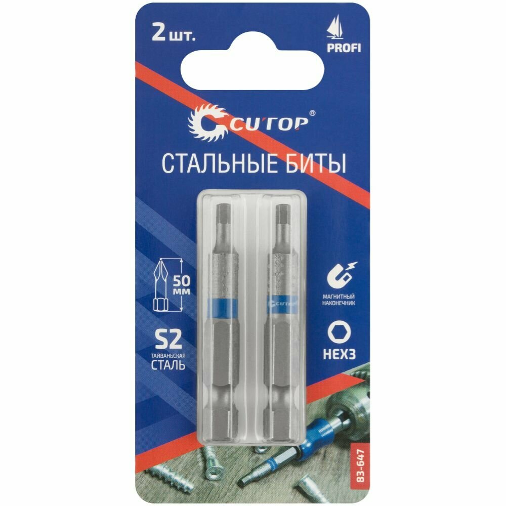 Биты стальные, 2 шт., CUTOP Profi, HEX3, 50 мм