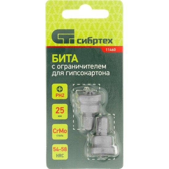Бита PH2 x 25 мм с ограничителем для ГКЛ, 2 шт, CrMo Сибртех 11460 интересное: