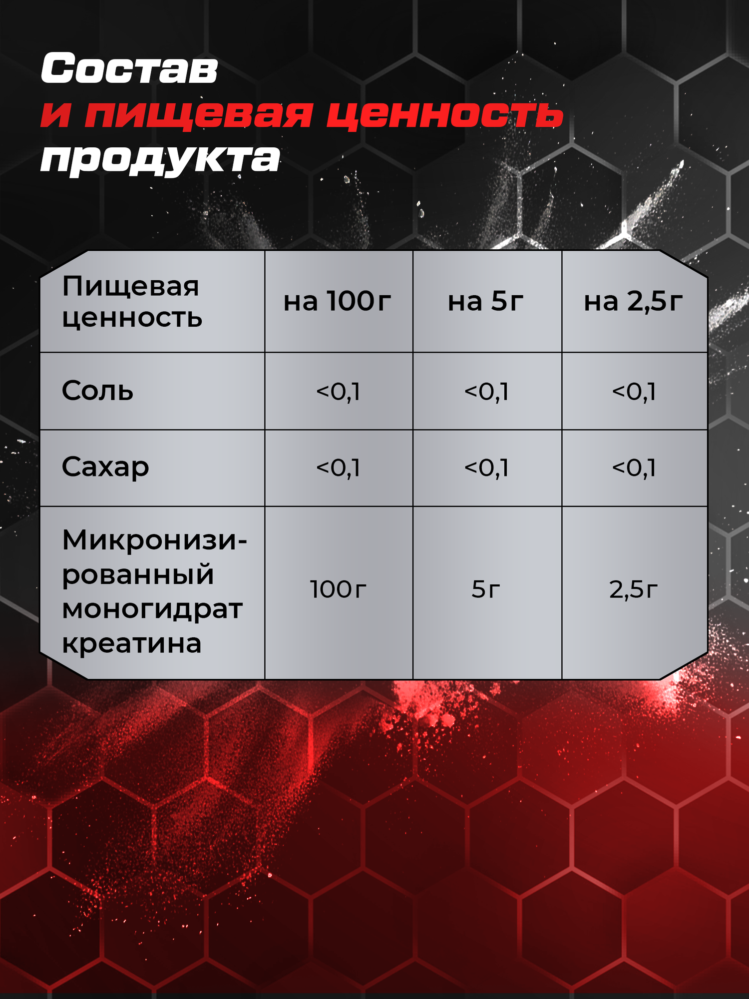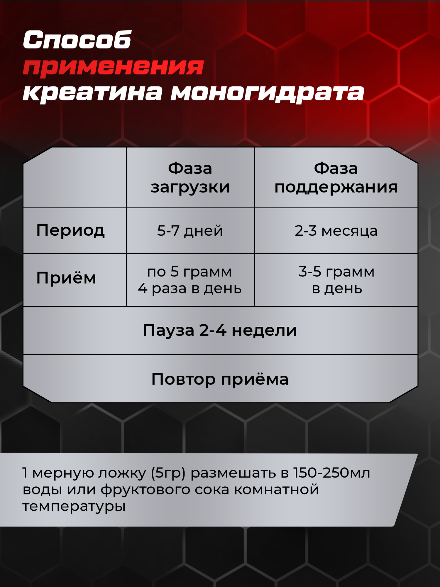 | Форма креатина | креатин моногидрат |