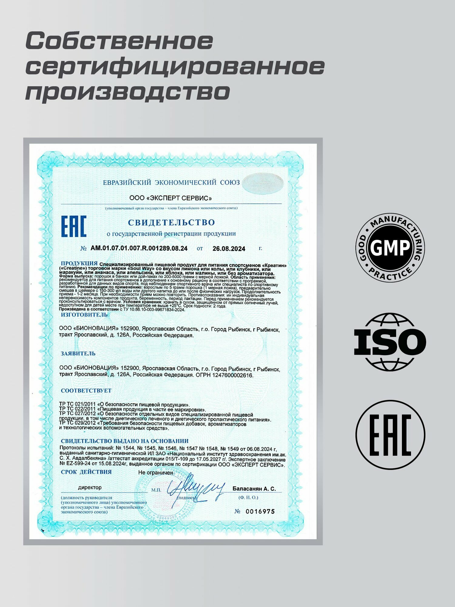Креатин моногидрат порошок 400 г / Soul Way / 80 порций