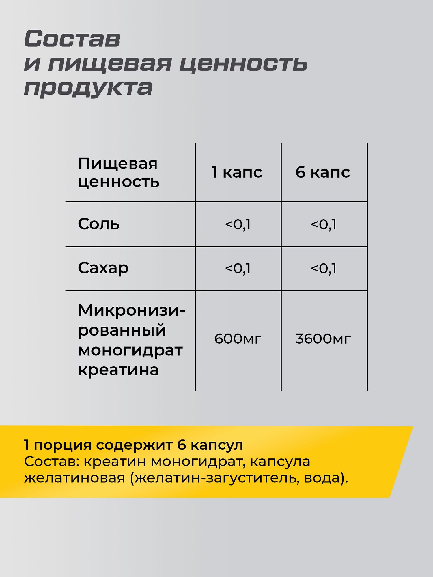 Купить Креатин моногидрат 250 капсул 31 порция, спортивное питание для набора мышечной массы