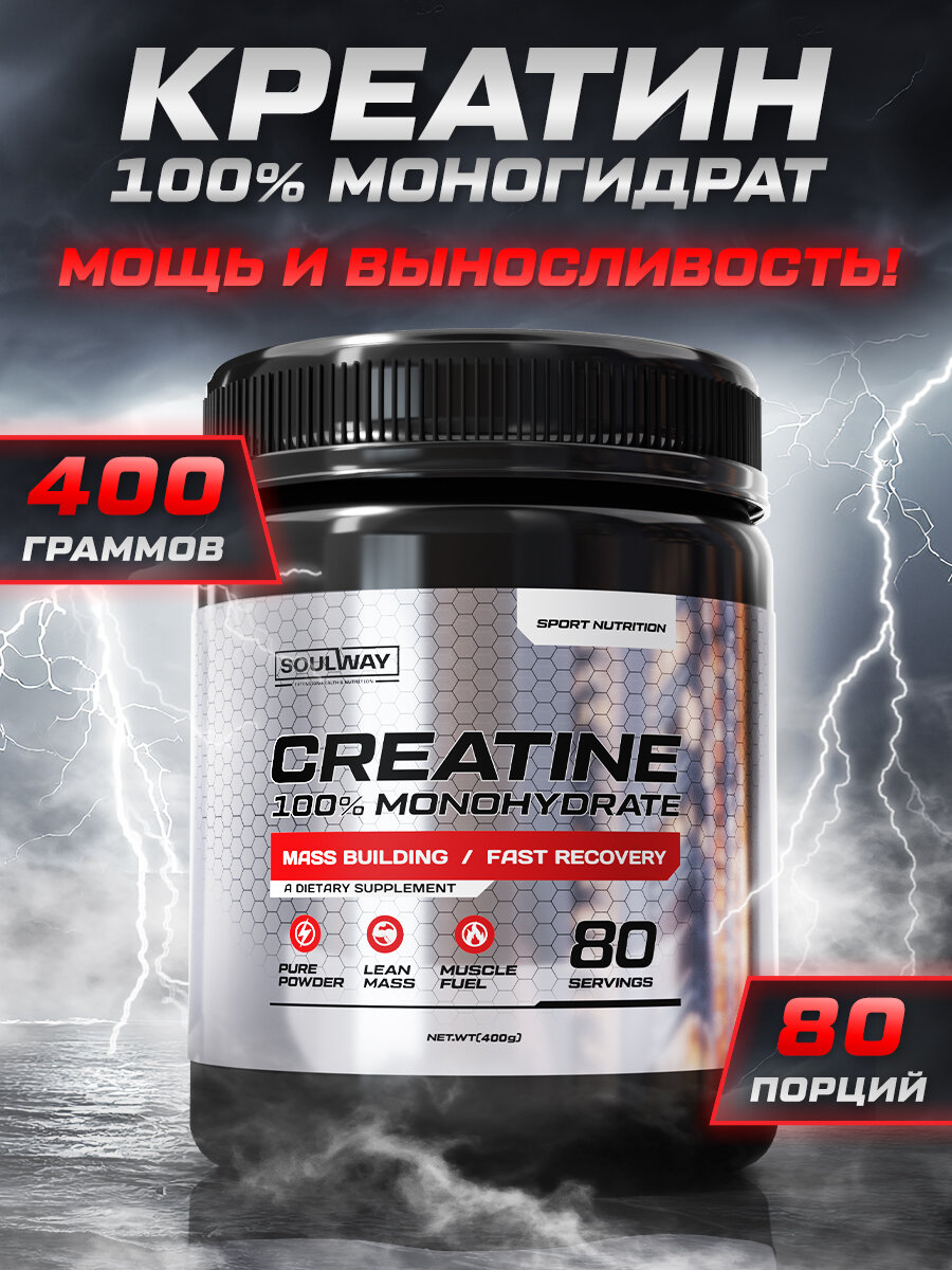 Креатин моногидрат порошок 400 г / Soul Way / 80 порций интересное:
