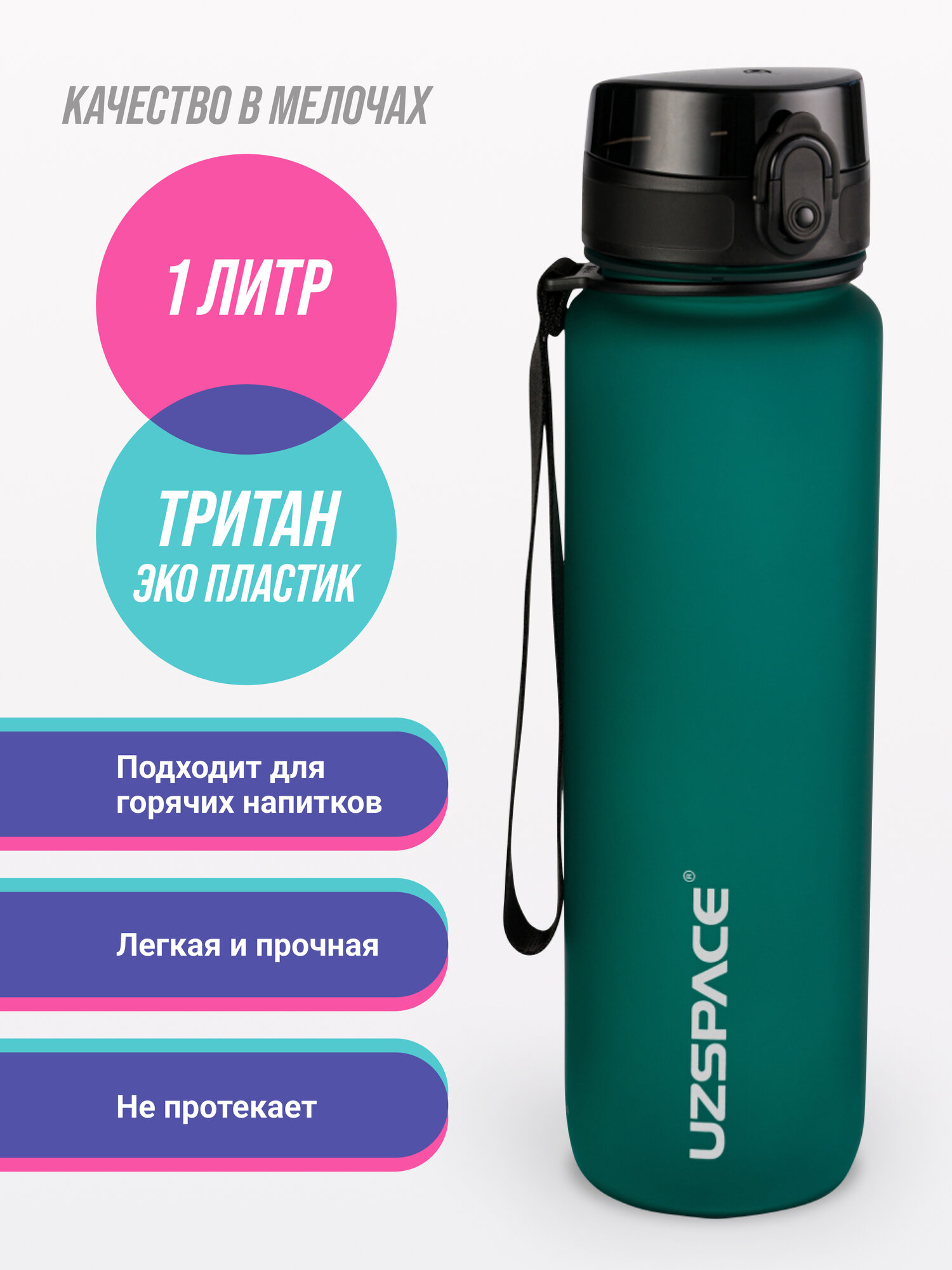 СохранитьБутылка для воды спортивная 1л UZSPACE 3038 темно-зеленый интересное: