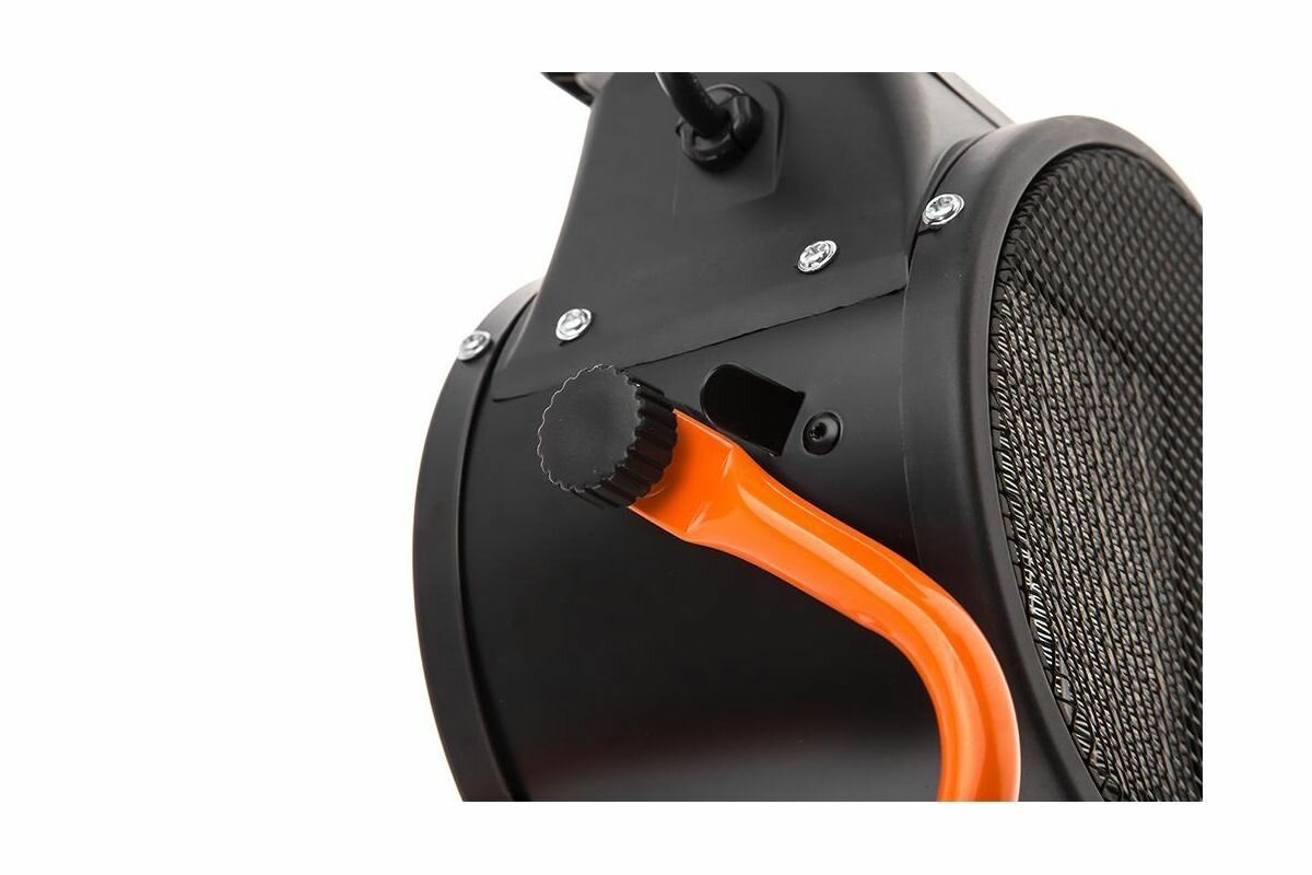 Не очень большой угол наклона вверх и низ (самой пушки относительно упоров) потока обдувочного воздуха, но регулировка есть и причём после регулировки есть "барашки", которые прочно фиксируют саму пушку на упорах, методом затяжки (у многих одноклассников таких зажимов нет). Наверное не подойдёт для помещений, где много древестной пыли, например деревообрабатывающее производство. Пыль может воспламениться в узких отверстиях нагревательных элементов, хотя защита от перегрева есть.
