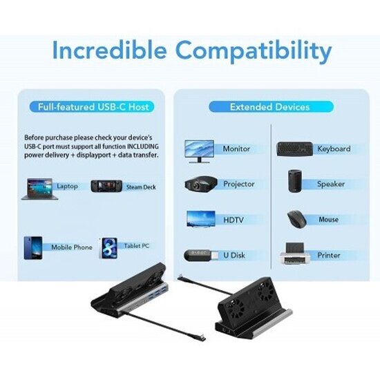 Док станция хаб USB-С 11 в 1 c охлаждением для Steam Deck, Nintendo Switch, RogAlly, KS-is