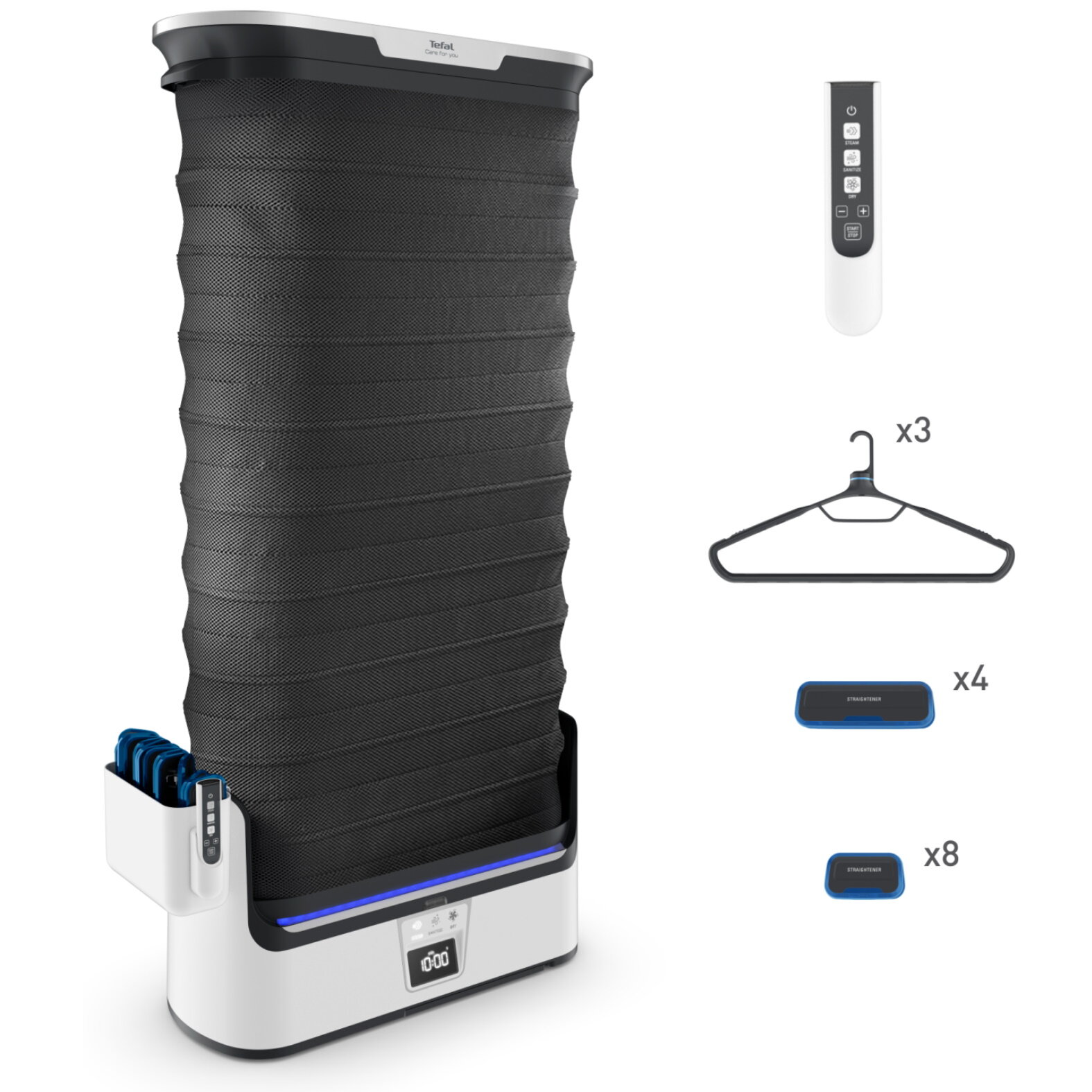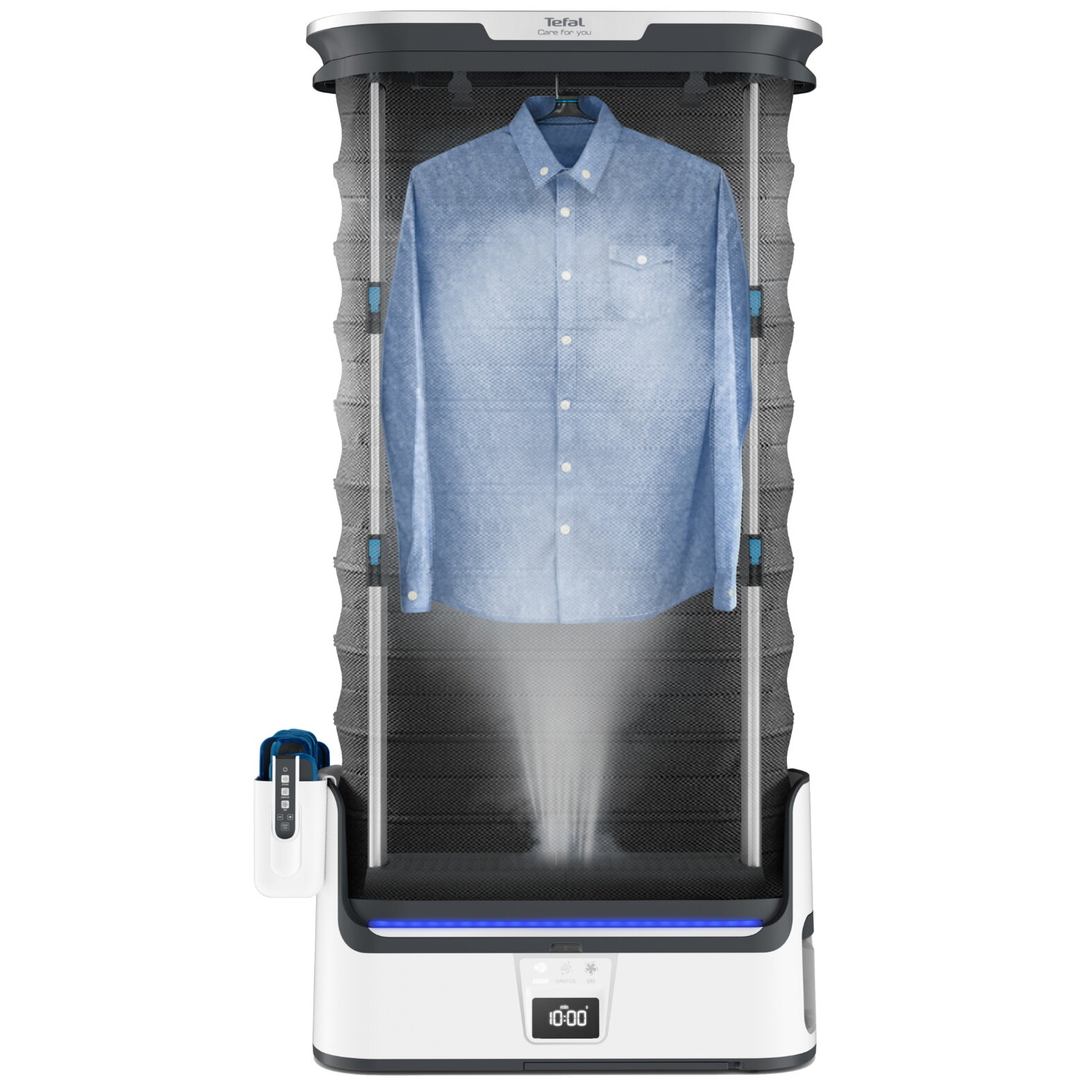 Купить Паровая система Tefal Care For You YT4050E1, со складным корпусом, с функцией бережной сушки и дизенфекции, ЖК-экраном, пультом ДУ, 12 утежилителями, 1800 Вт, белая/серая