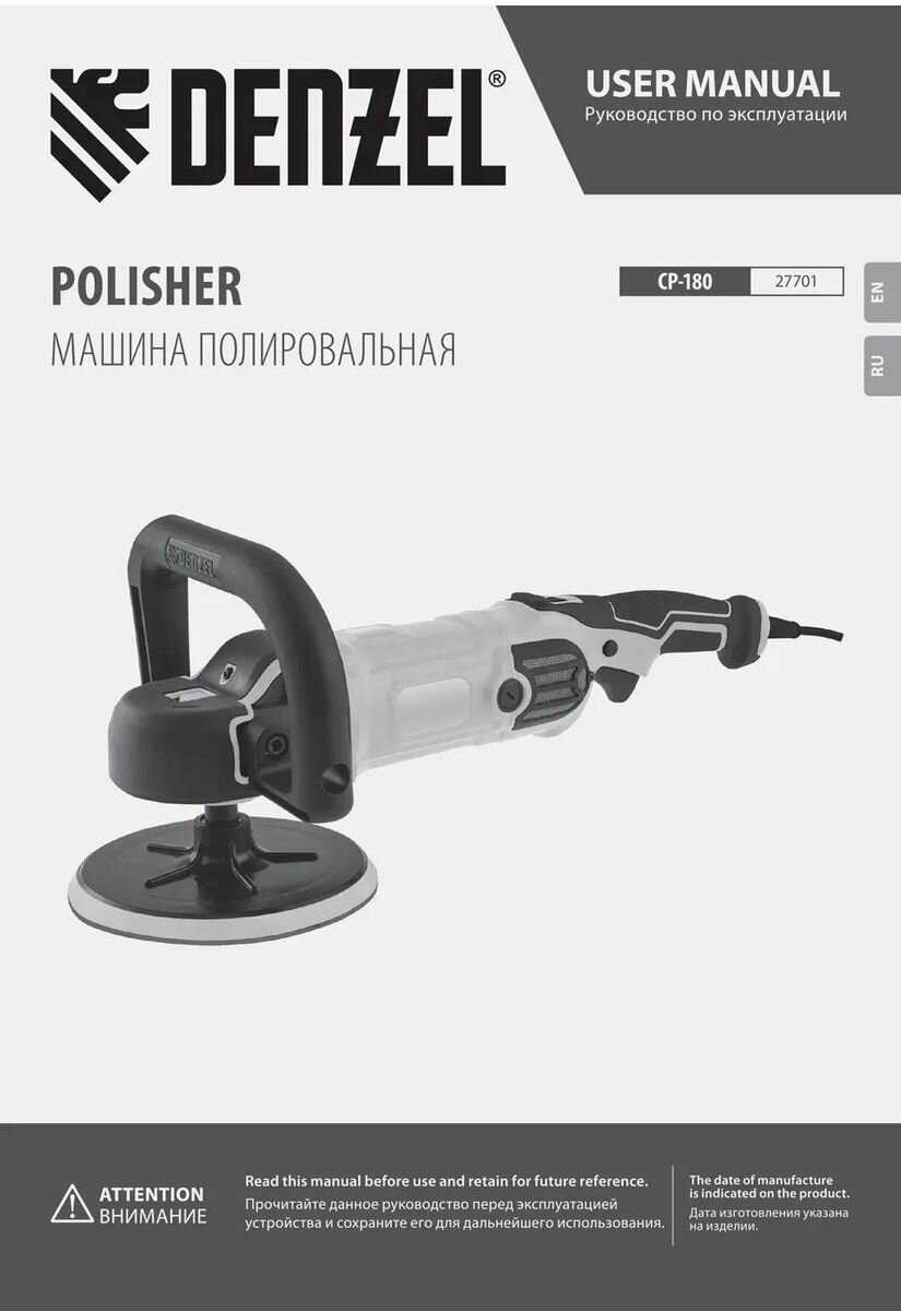 Машина полировальная Denzel CP-180 27701, 1400 Вт, 180 мм, 0-3000 об/мин Denzel 10284035 .