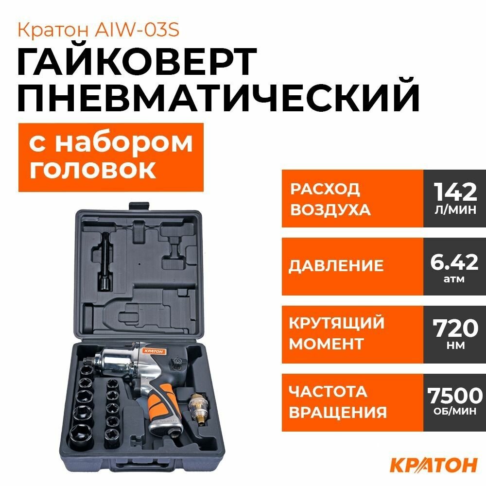 Гайковерт пневматический с набором ударных головок Кратон AIW-03S интересное: