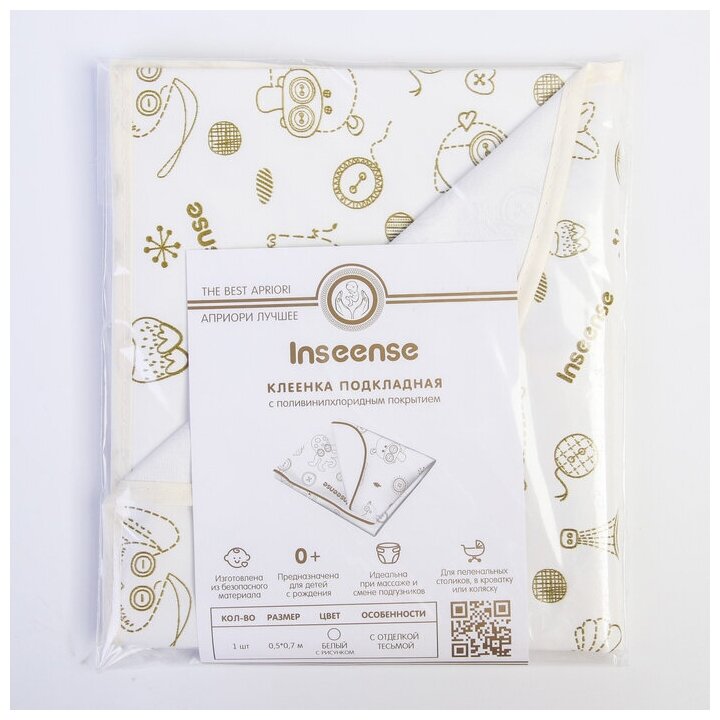 Клеенка подкладная Inseense с ПВХ-покрытием 50х70 см c тесьмой белая с рисунком интересное: