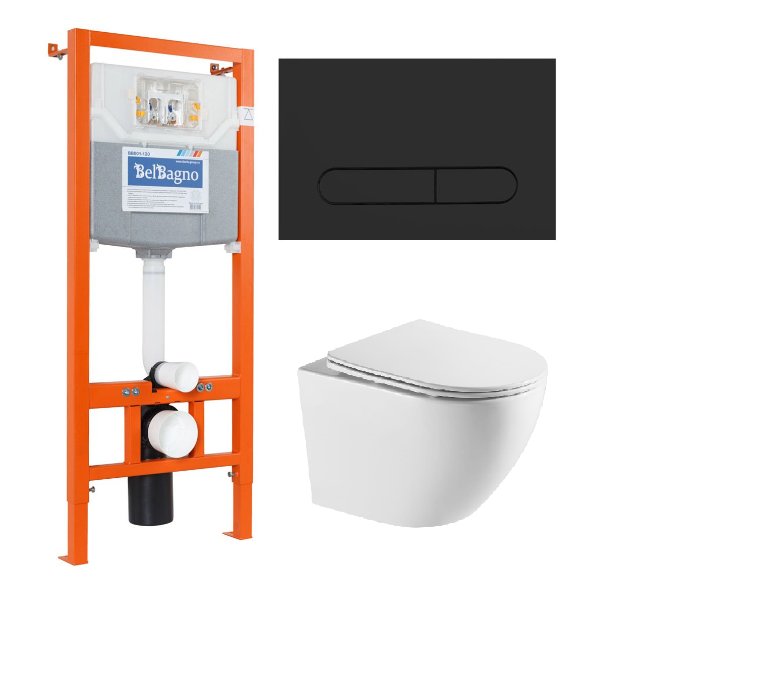 Инсталляция BelBagno BB001-120 с кнопкой смыва BB007-PR-NERO.M черный матовый