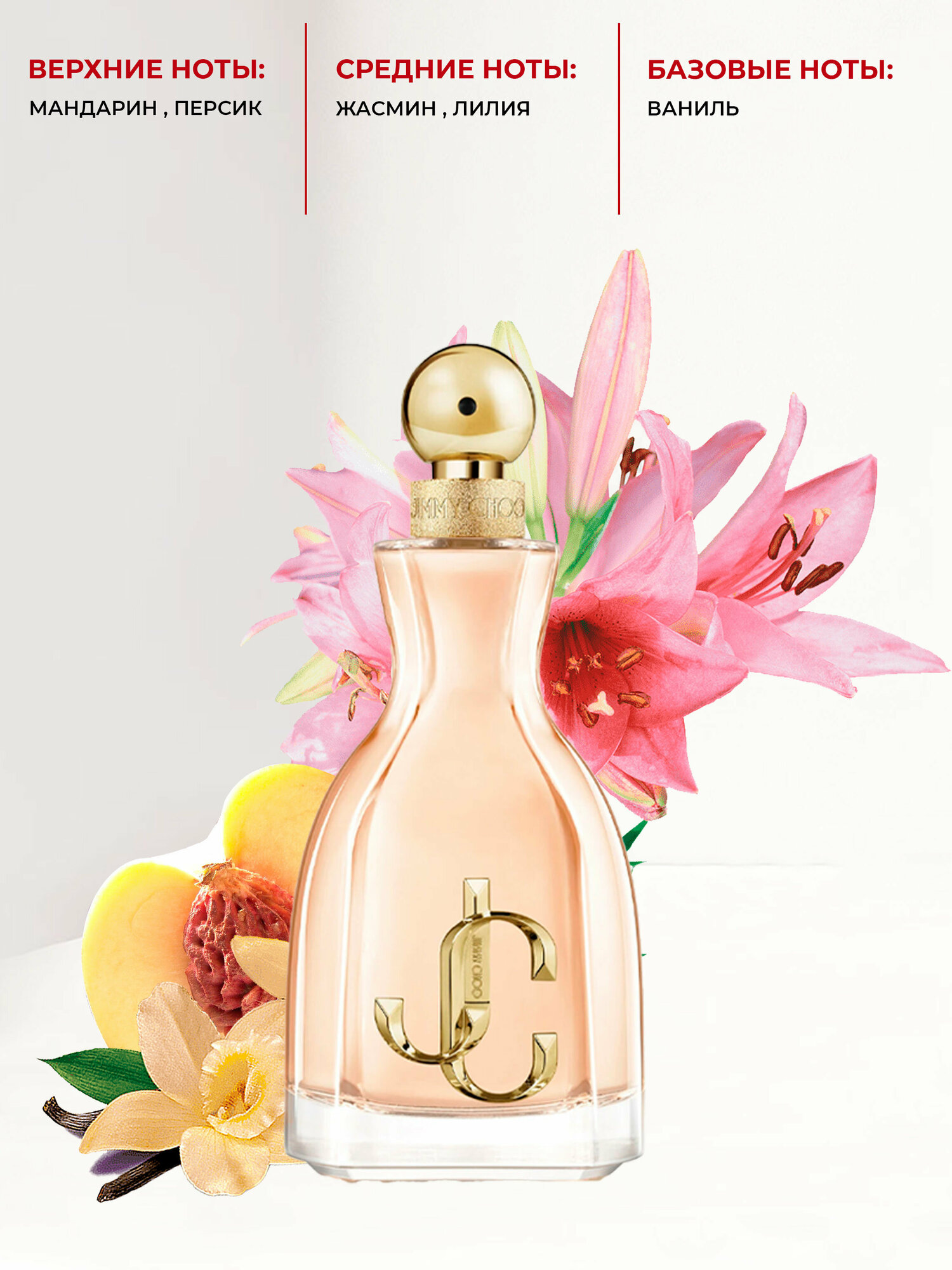 | Ноты | персик / жасмин / лилия / ваниль / мандарин |