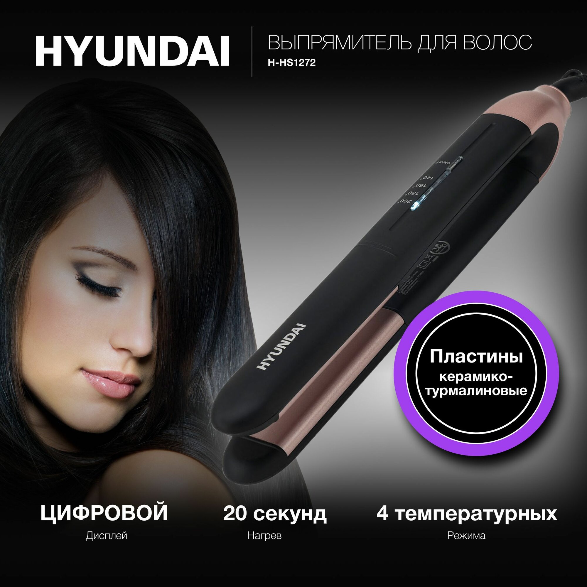 Выпрямитель для волос Hyundai H-HS1272, черный