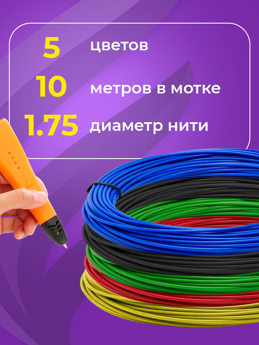 СохранитьFuntasy Набор PLA-пластика для 3д ручки 5 цветов по 10 метров , набор , безопасный , без запаха , леска пластмасса , картриджи интересное: