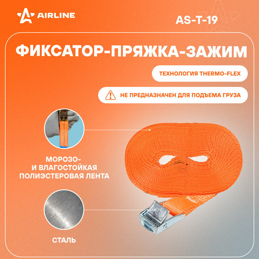 Ремень крепления груза с фиксатором 4,5 м, 200 кг AIRLINE AS-T-19