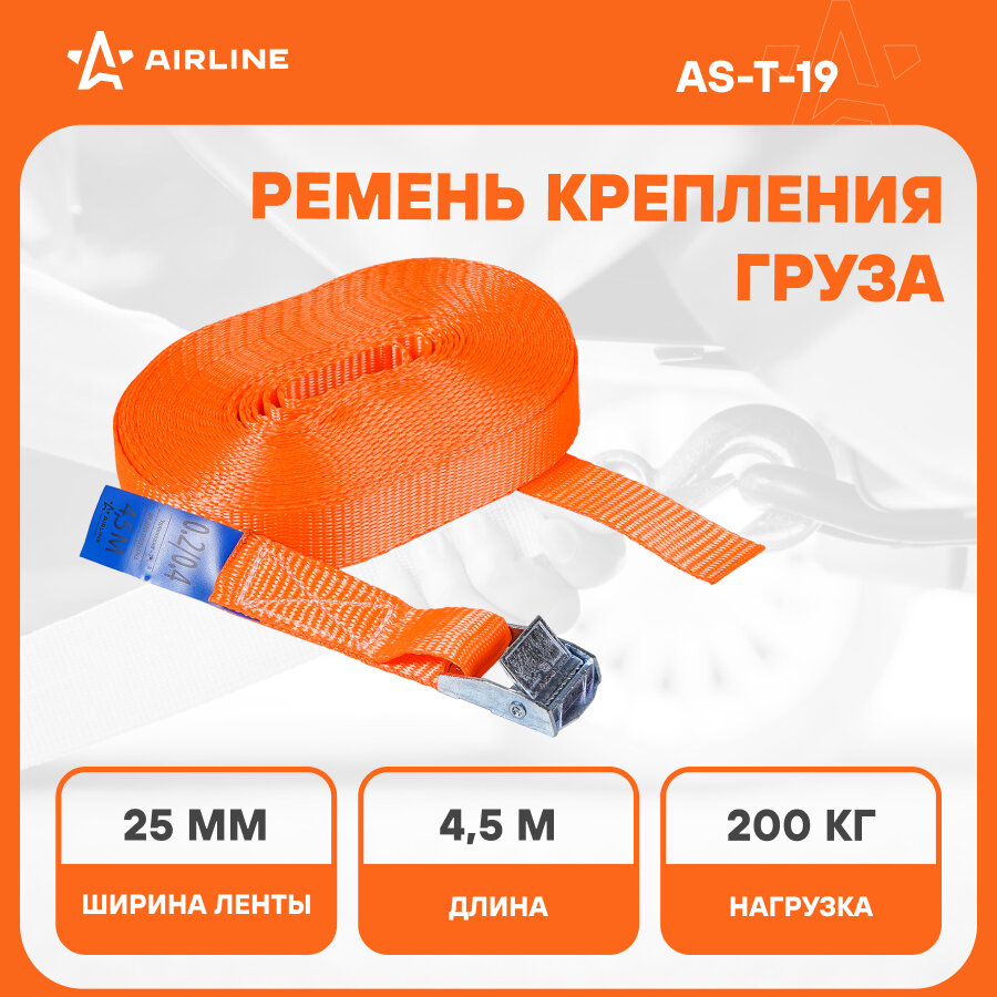 Купить Ремень крепления груза с фиксатором 200 кг, 4,5 м AS-T-19 AIRLINE
