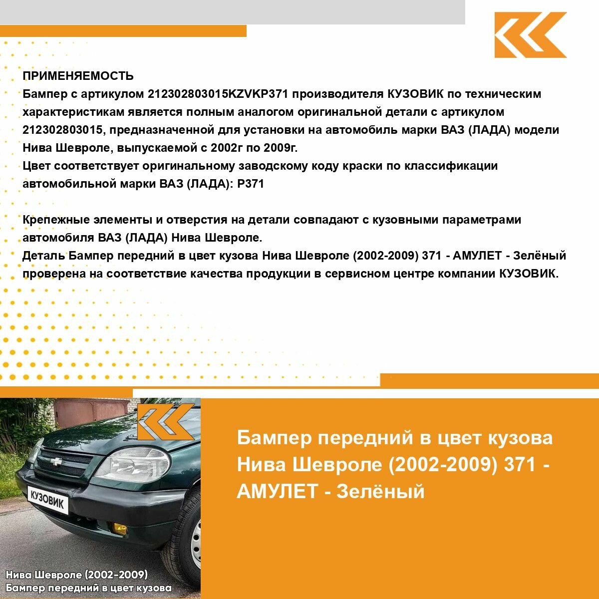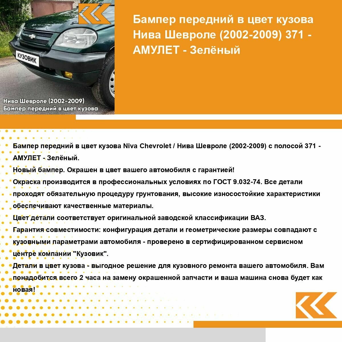 СохранитьБампер передний в цвет кузова Нива Шевроле 371 - амулет - Зеленый с полосой интересное: