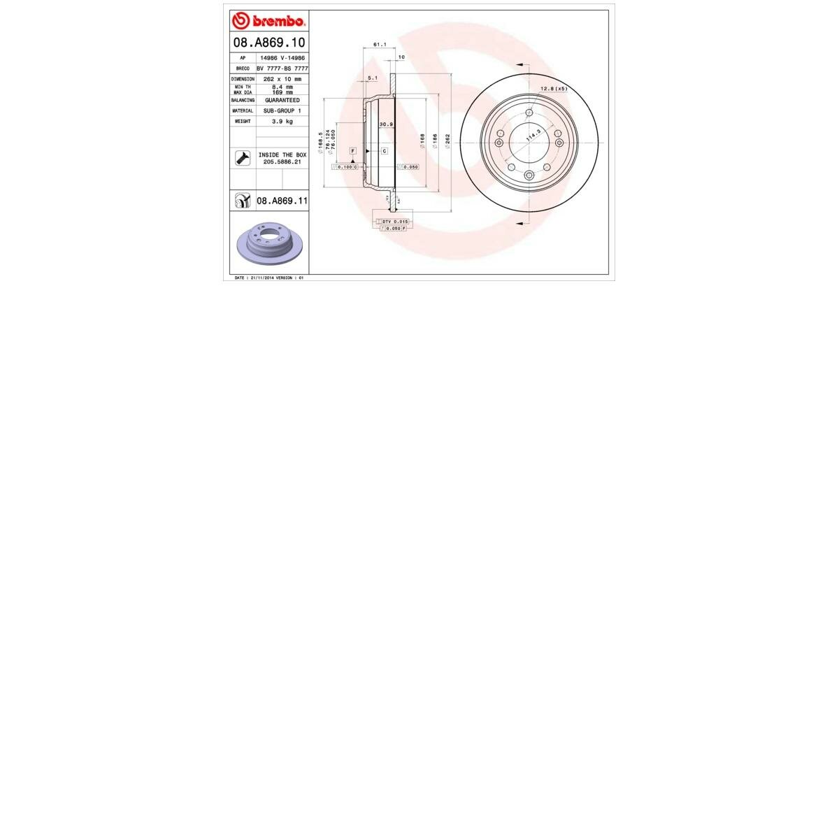 Тормозной диск, BREMBO 08.A869.10 (2 шт.)