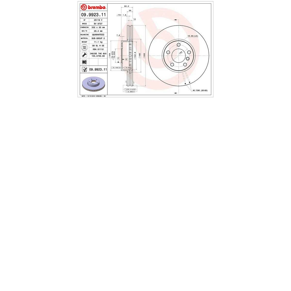 Диск тормозной передний BREMBO 09.9923.11 (BMW X5 (E70/F16)/X6 (F16) 07- 2.0/3.0) (цена за 1шт)