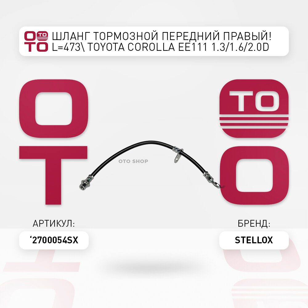 шланг тормозной передний правый L=473\ Toyota ( Тойота ) ( Тойота Тоёта Таёта ) Corolla ( Королла ) ( Королла ) EE111 1.3 / 1.6 / 2.0D 97 STELLOX 2700054SX, 2700054_SX, 27-00054-SX