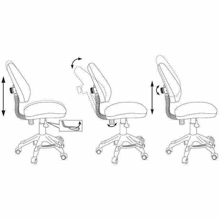 | Плюсы: | Компактное, с подставкой для ног, с набором регулировок..можно отрегулировать высоту сиденья, высоту спинки, глубину сиденья, и качание.