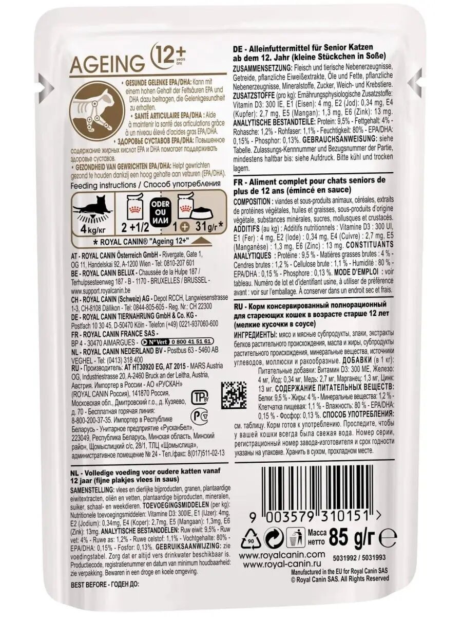 СохранитьКорм для кошек влажный ROYAL CANIN Ageing 12+, в соусе, 85 г х 12 штук интересное: