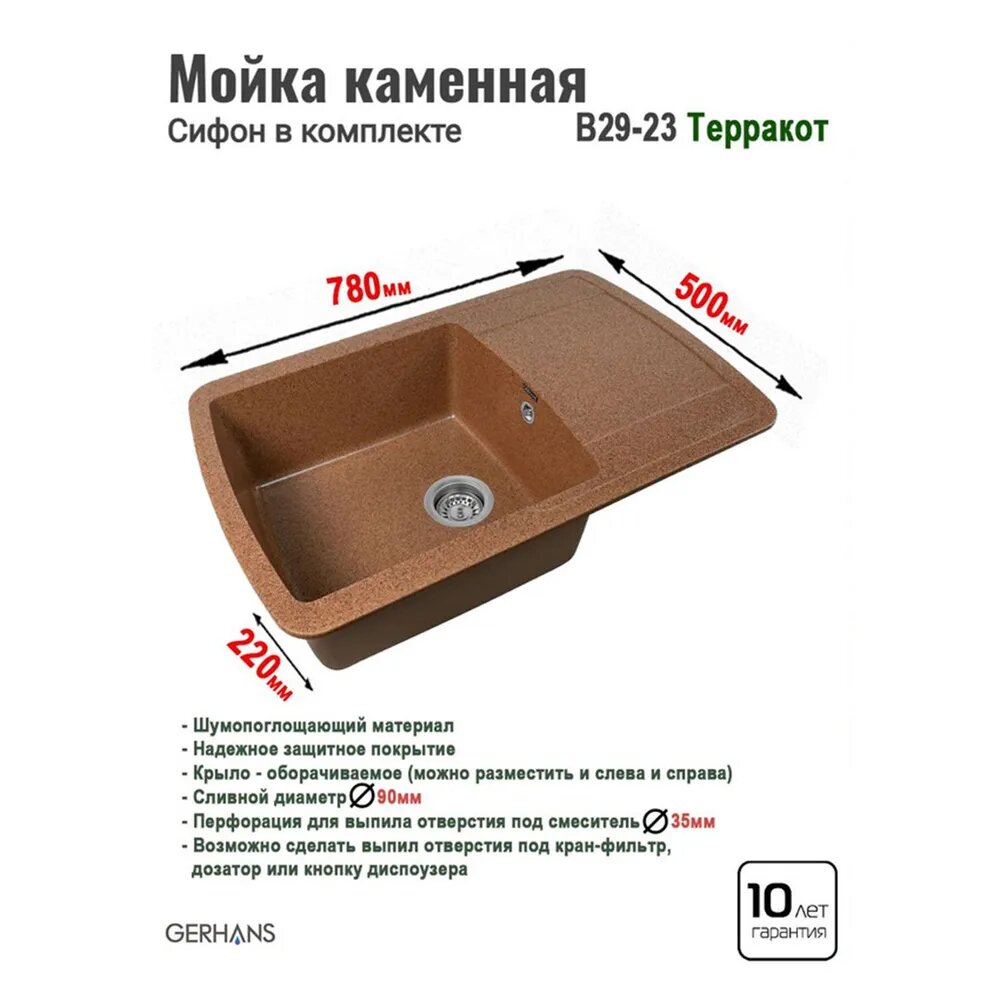 Купить Мойка для кухни Gerhans B29-23 терракотовая 780х500мм (Беларусь)