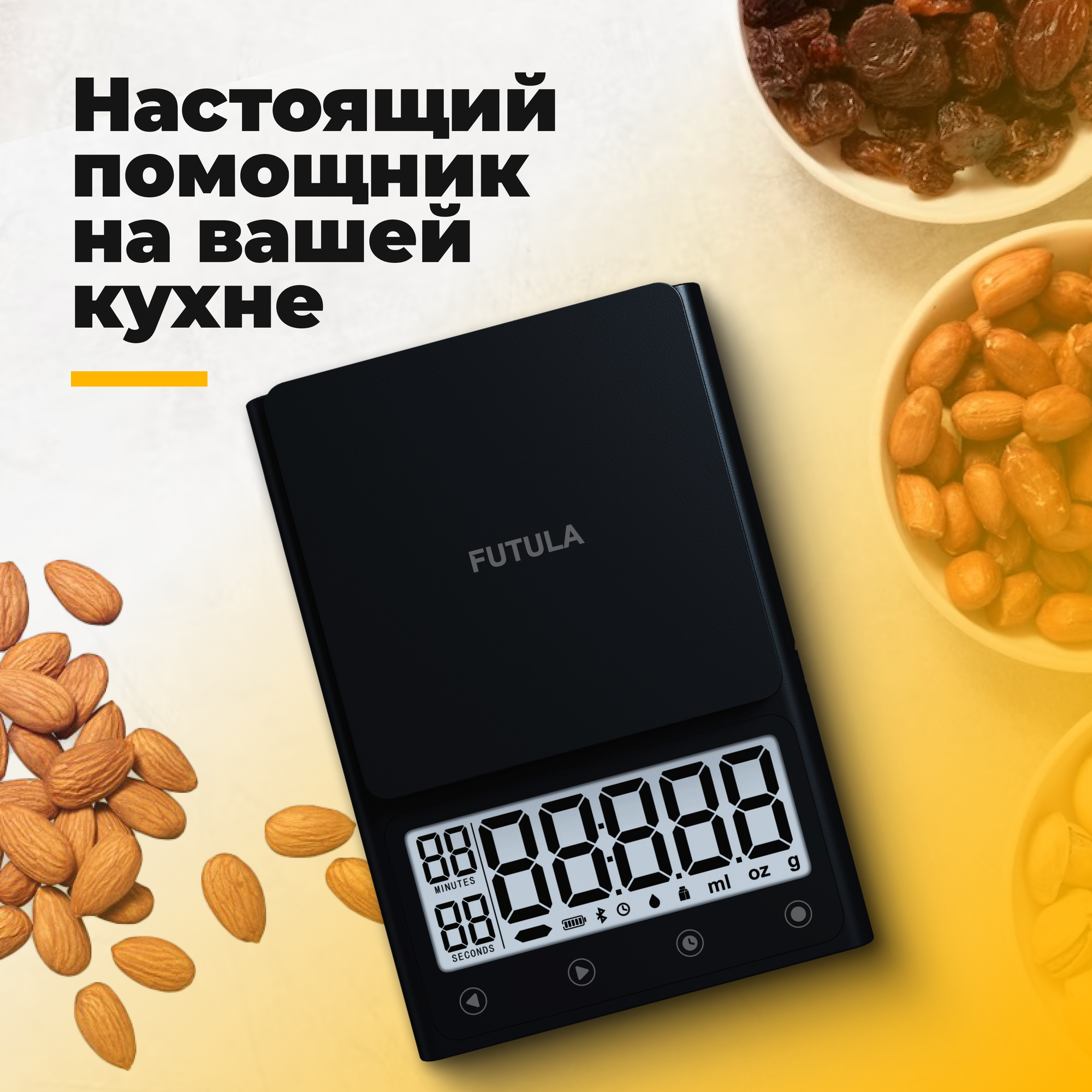 Кухонные электронные весы Futula Kitchen Scale 2 черные, электронные, индикатор заряда батареи и перегрузки