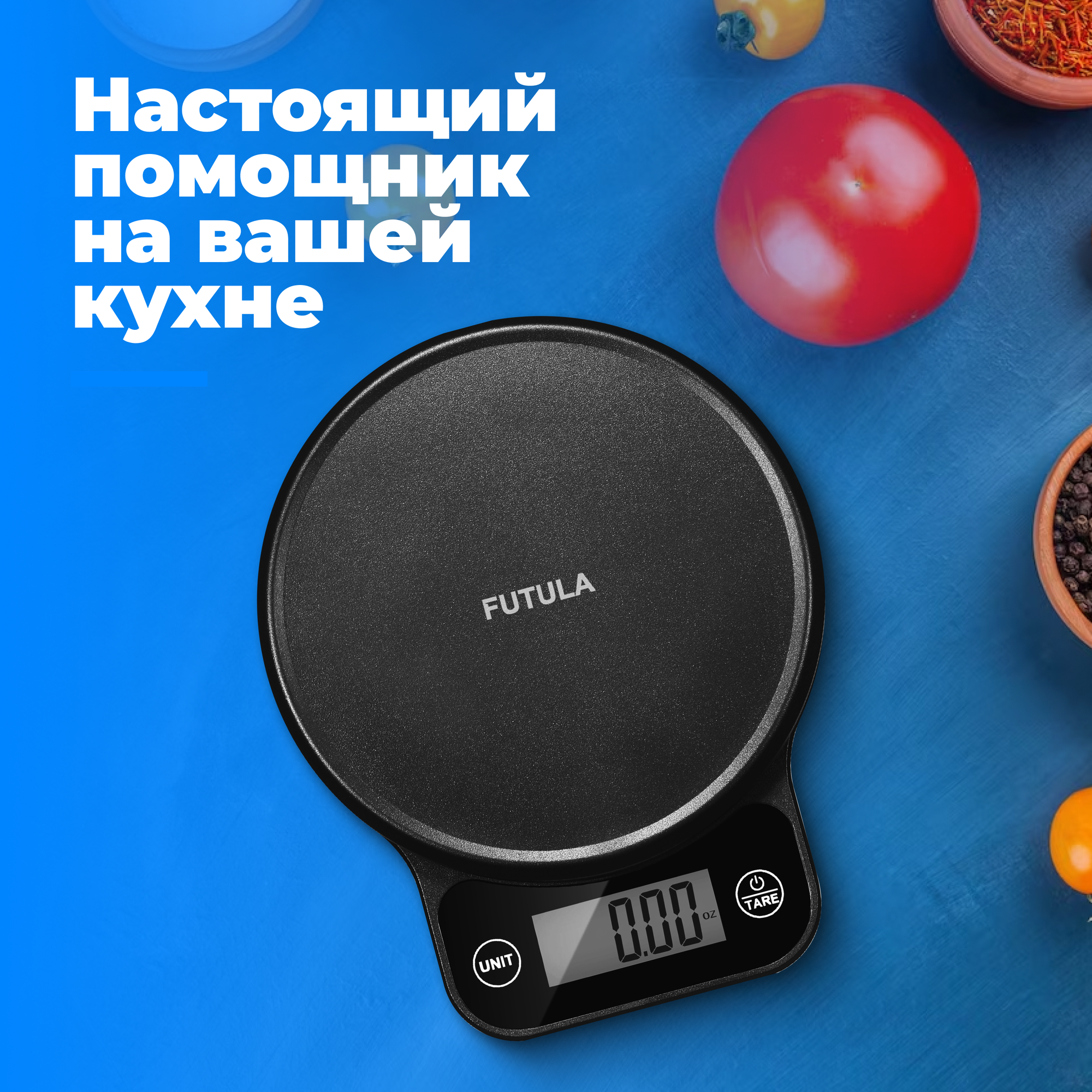 Кухонные электронные весы Futula Kitchen Scale 2 черные, электронные, индикатор заряда батареи и перегрузки