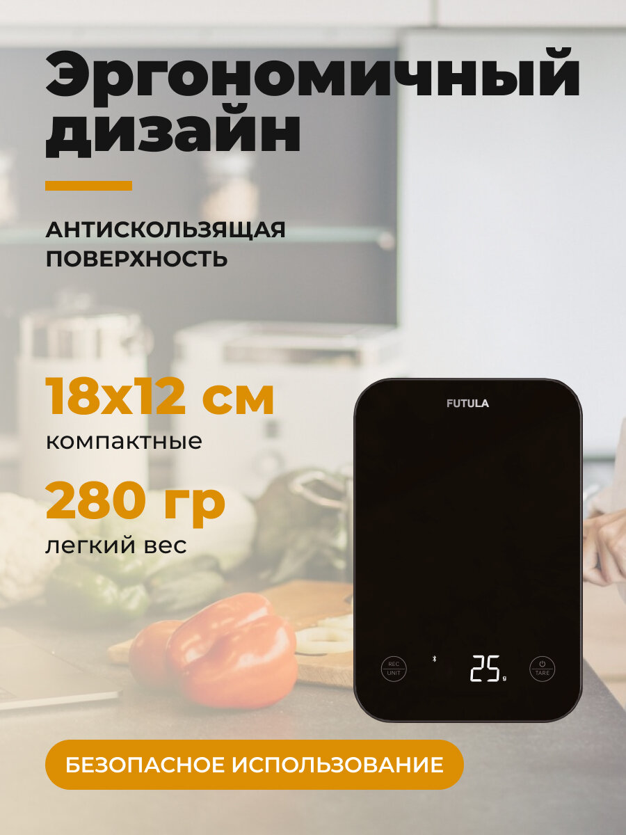Кухонные электронные весы Futula Kitchen Scale 2 черные, электронные, индикатор заряда батареи и перегрузки