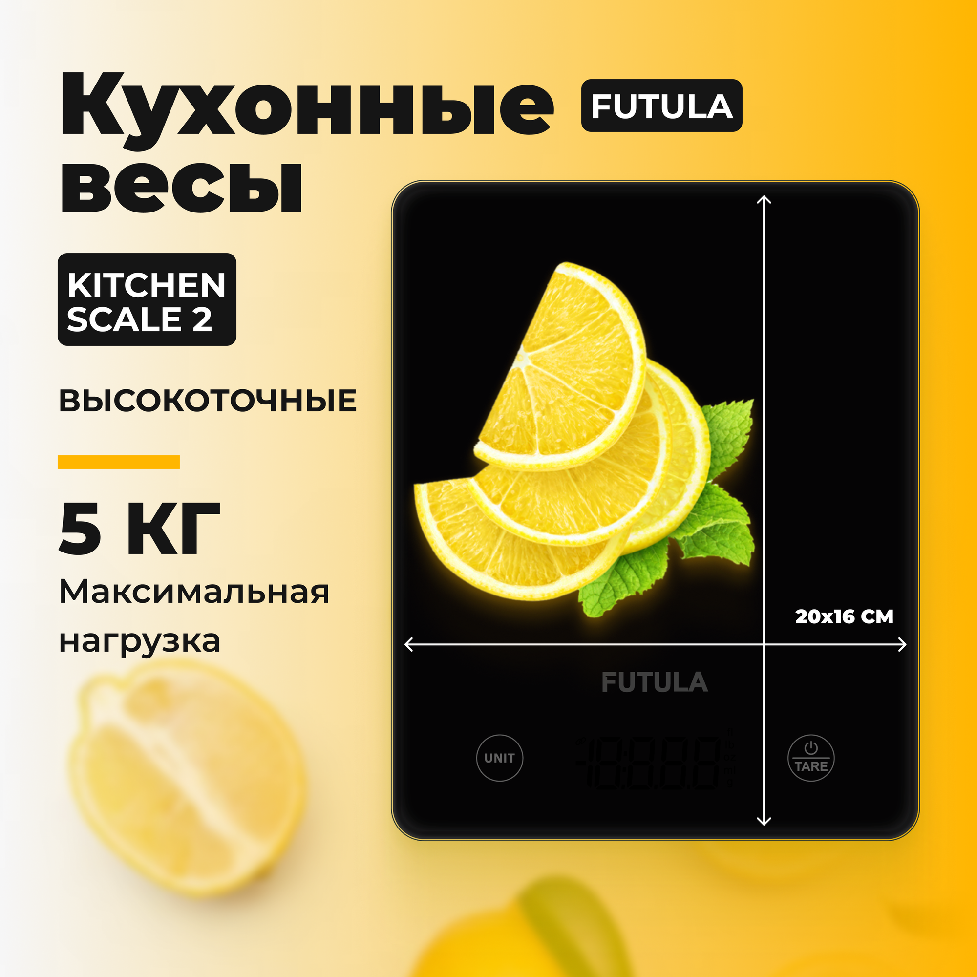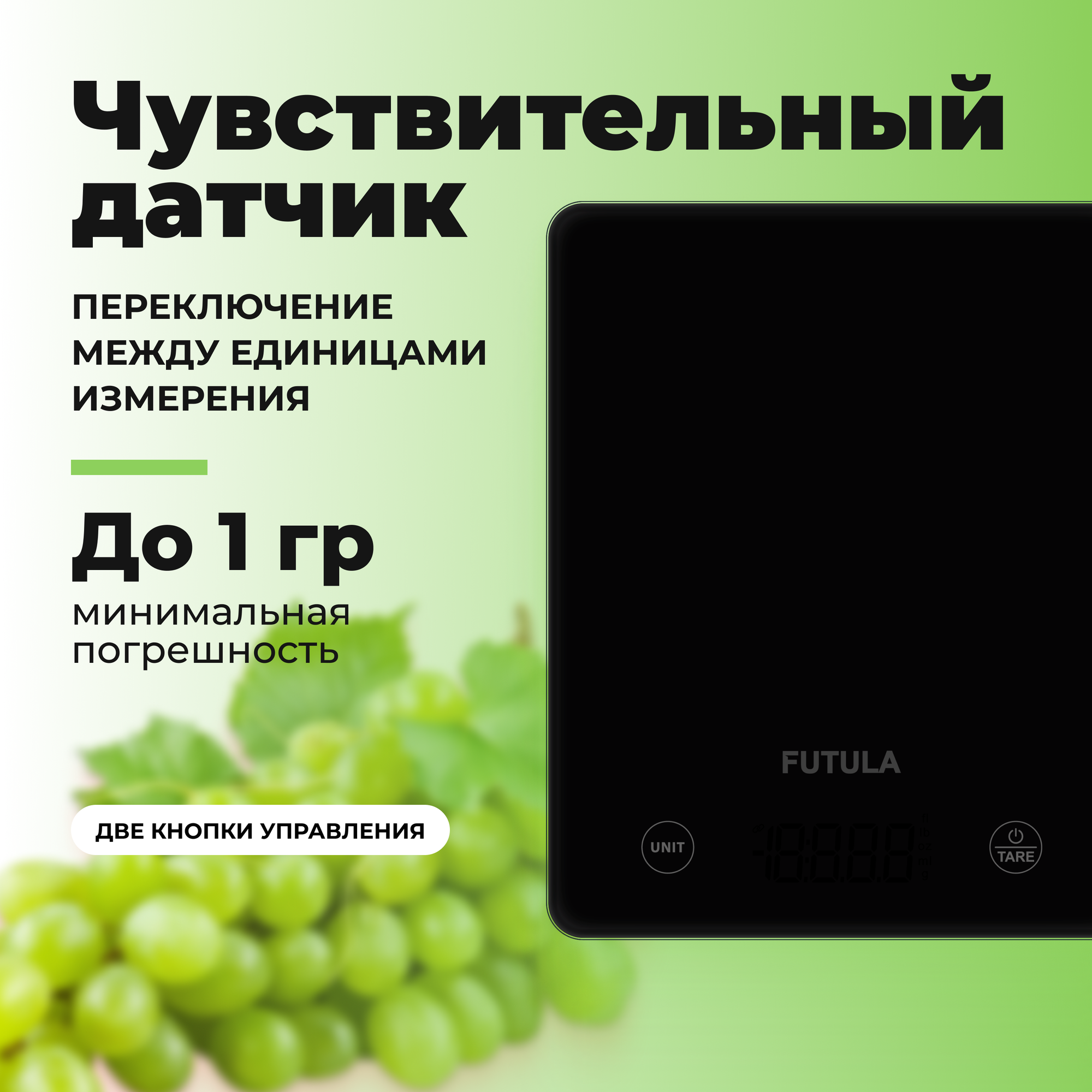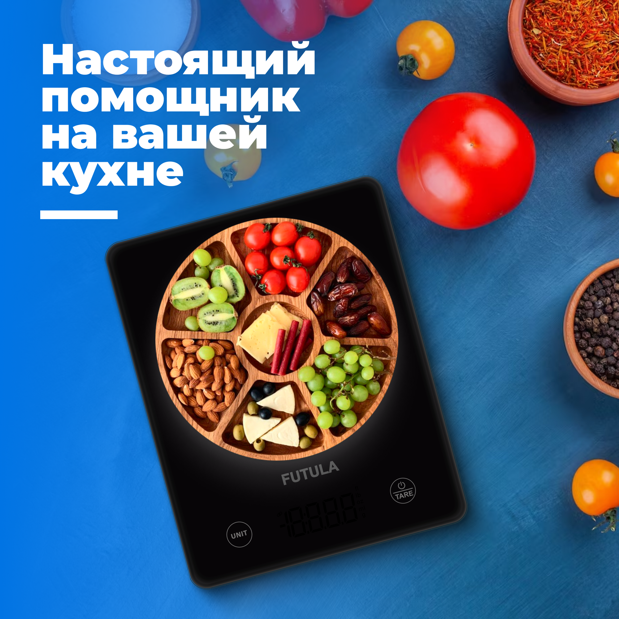 Кухонные электронные весы Futula Kitchen Scale 2 черные, электронные, индикатор заряда батареи и перегрузки