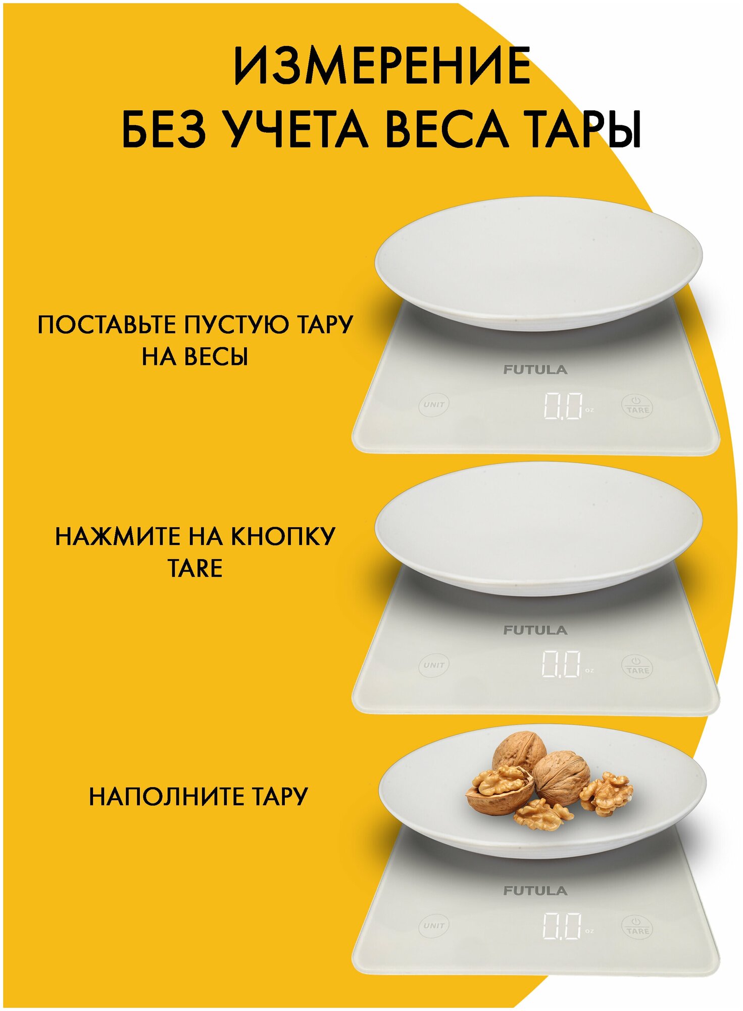 Кухонные электронные весы Futula Kitchen Scale 2 белые, электронные, индикатор заряда батареи и перегрузки