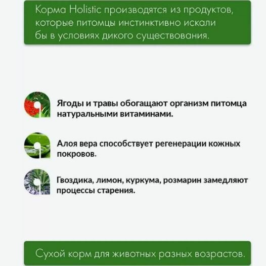 Корм по тактильным ощущениям жирненький, а это значит, что хорошо будет усваиваться; Приятно пахнет, нет никаких резких запахов в отличие от корма, который продаётся в магазине; Прекрасный состав! Высокое содержание мяса и белка, что и является главное отличительной чертой данного корма от любого другого. Для изготовления используется только натуральное мясо. Котик очень хорошо кушает корм и был ему несказанно рад с первых секунд. Но, надо помнить о том, что холистик лучше всего вводить постепенно, чтобы у животного не было расстройства. Корм сытный и его необходимо небольшое количество, чтобы питомец наелся и больше не клянчил до следующего кормления; Шёрстка становится мягкой, блестящей и четвероногий друг в целом меньше линяет. |