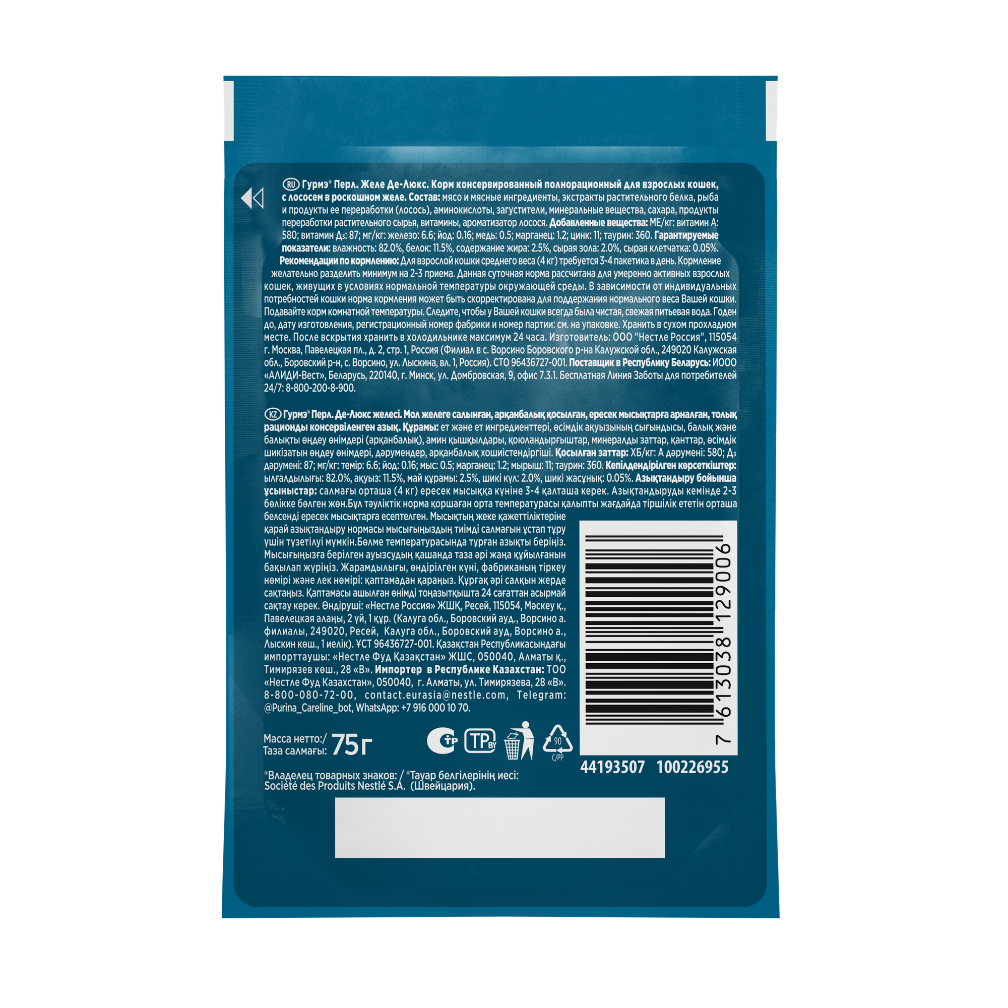СохранитьГурмэ Перл Желе Де-Люкс 75 г влажный корм для кошек, с лососем в роскошном желе х26 штук интересное: