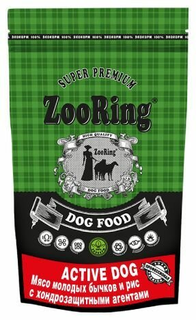 Сухой корм для собак ZooRing для активных животных, телятина, с рисом 2 шт. х 700 г (для мелких пород)