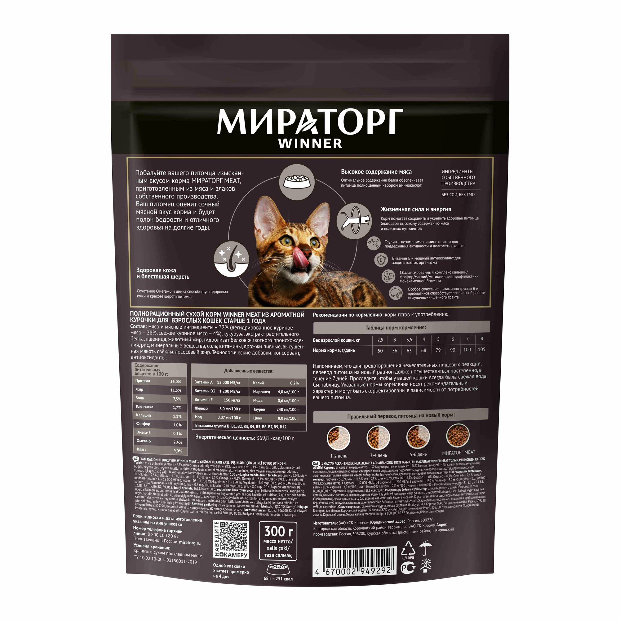 Корм сухой Мираторг WINNER MEAT из ароматной курочки для взрослых кошек старше 1 года 300 г.